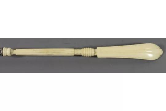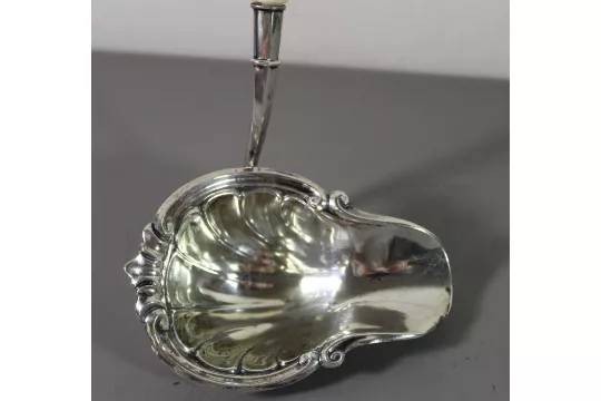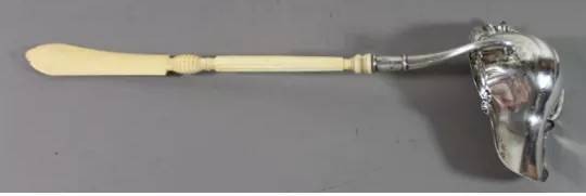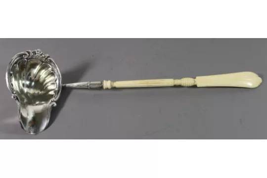 Bowlenkelle, um 1880, Silber (wohl lötig) mit Beingriff, L-38,5cm. [1]
