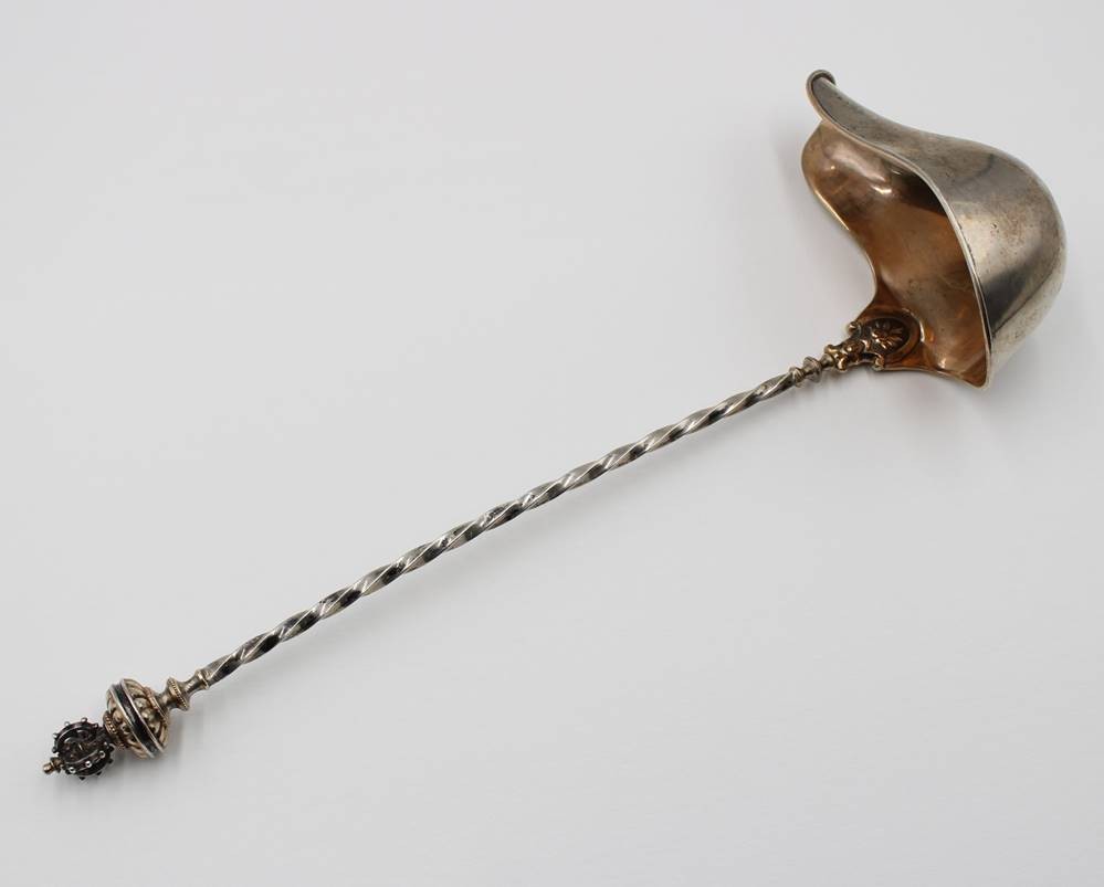 Bowlenkelle um 1900, Silber (gepr.), an Laffe gerissen, ca. 111gr., ca. L-33gr., [1]