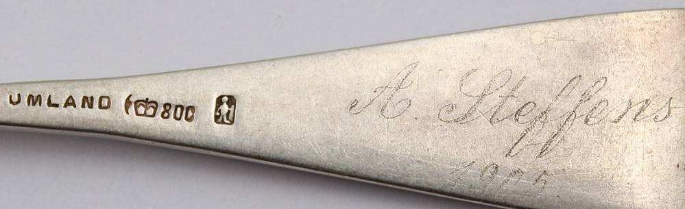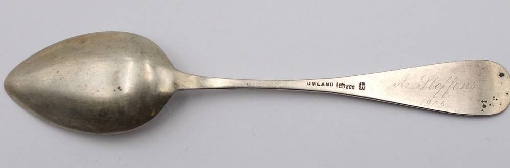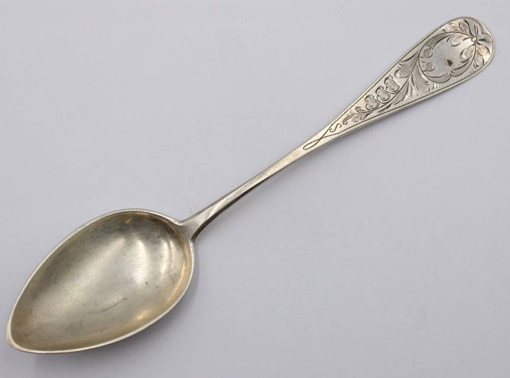 Esslöffel, datiert 1905, 800er Silber, ziseliert, Punktgravur, 29,8gr., L-18,2cm [1]