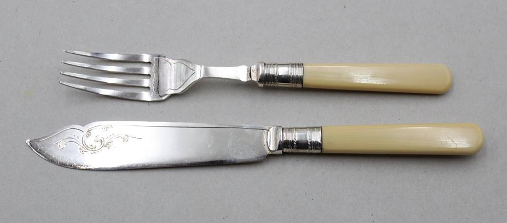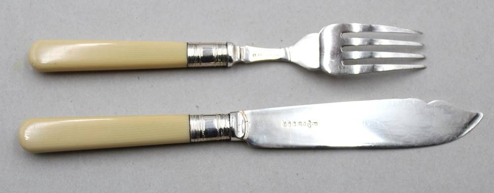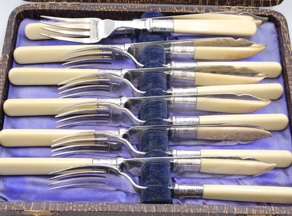 Fischbesteck in Kasten, EPNS, England, Bakelitgriffe, in Kasten, ca. L-21xm [1]