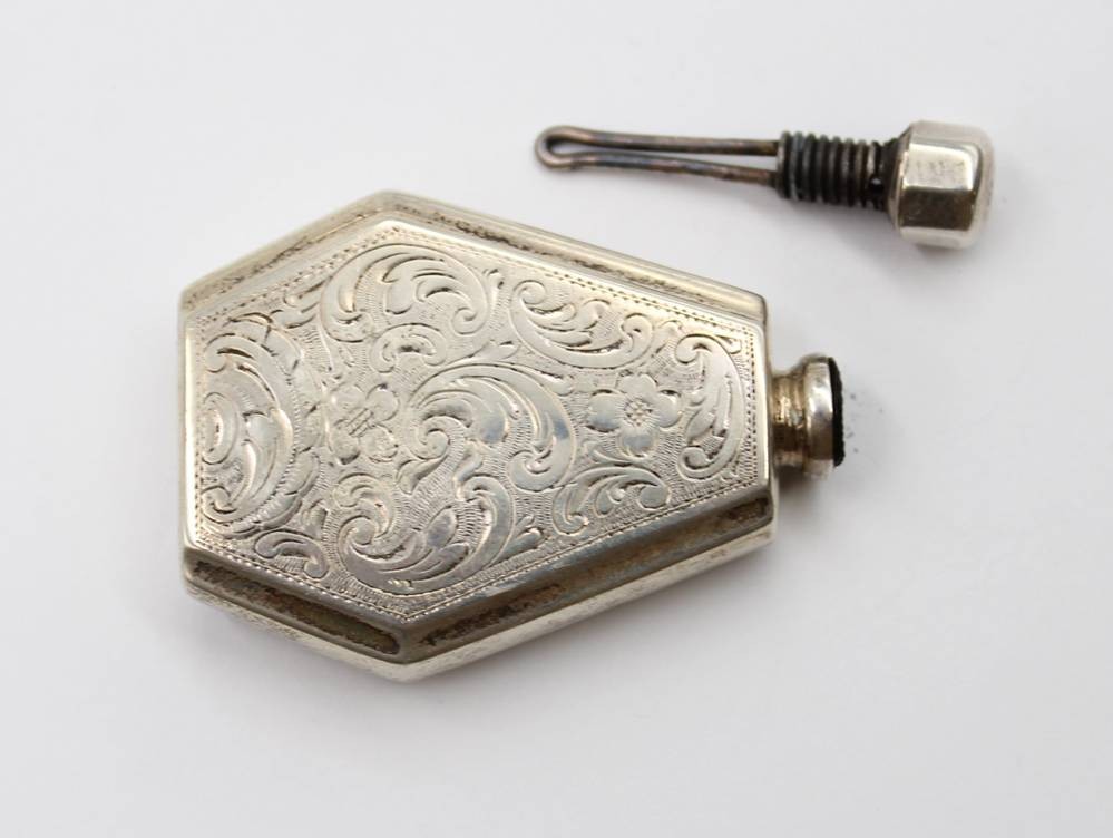 Flacon, 835er Silber, floral ziseliert, ca. 15gr., ca. 5,5 x 3,5cm [1]