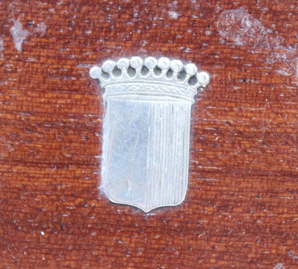 Flaschenuntersetzer, 800er Silber, Holzboden mit Silberwappen, Silber ca. 65gr. , D-12,5cm [1]