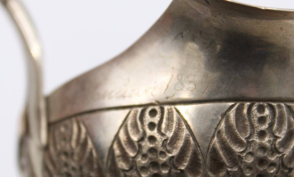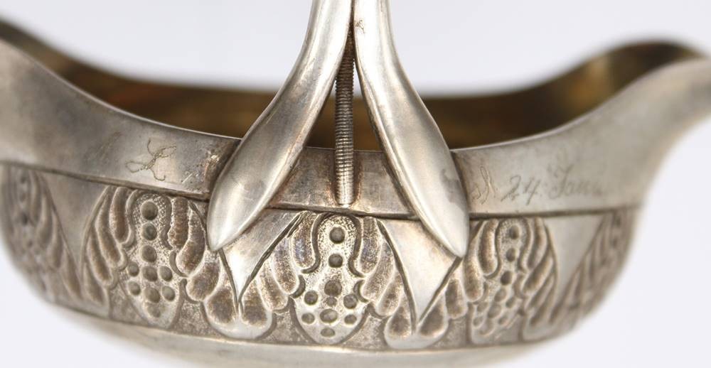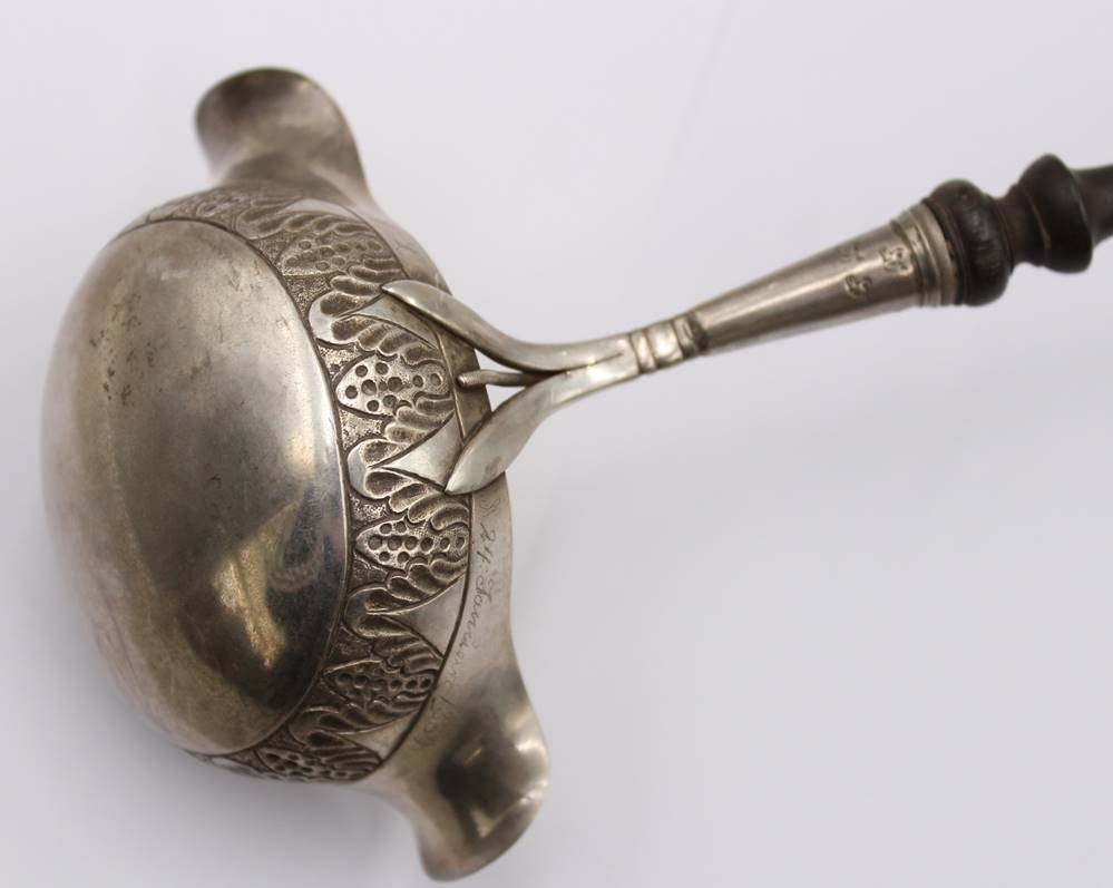 frühe Kelle, Silber mit Holzgriff, Punktgravur und datiert 1859, ca. L-38cm [1]
