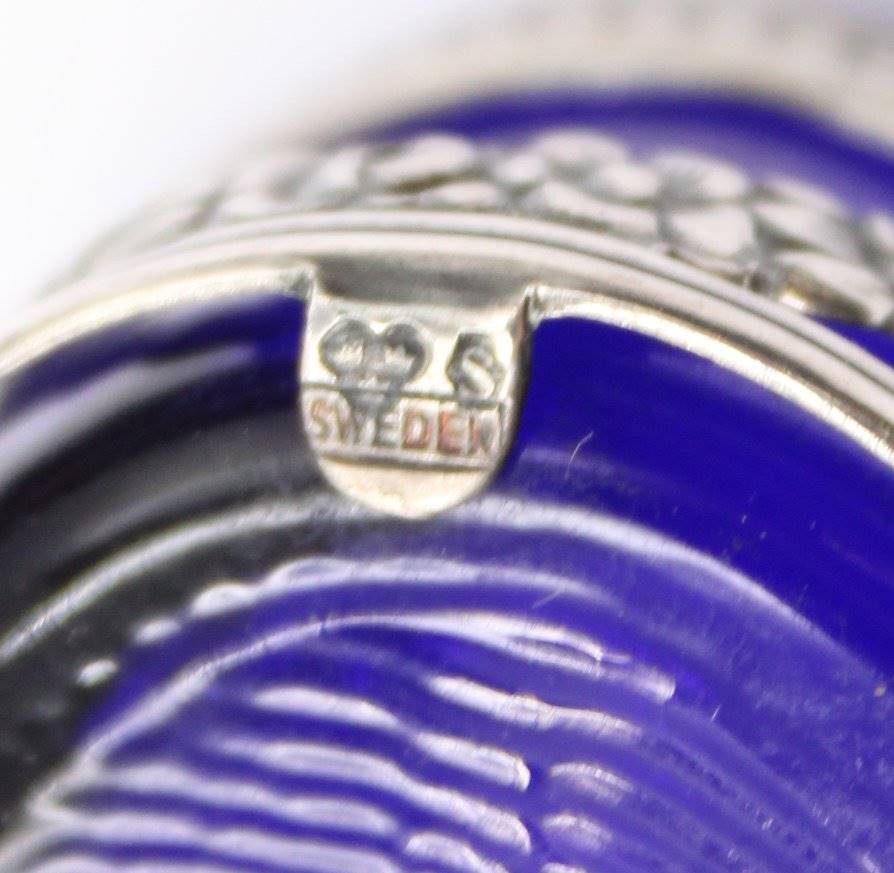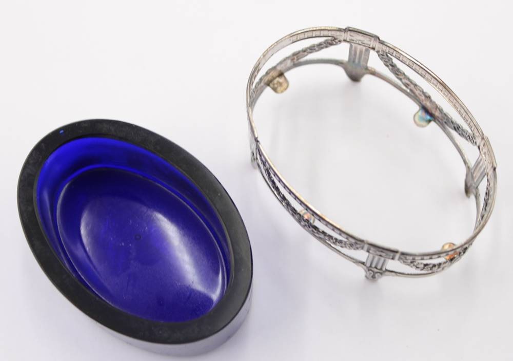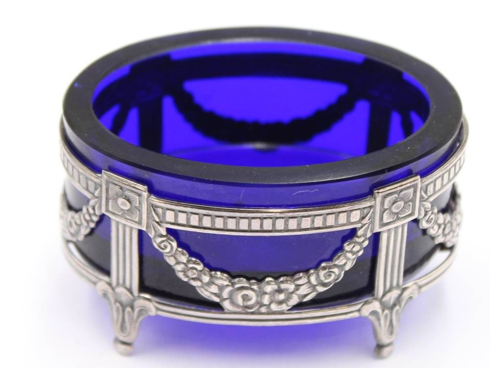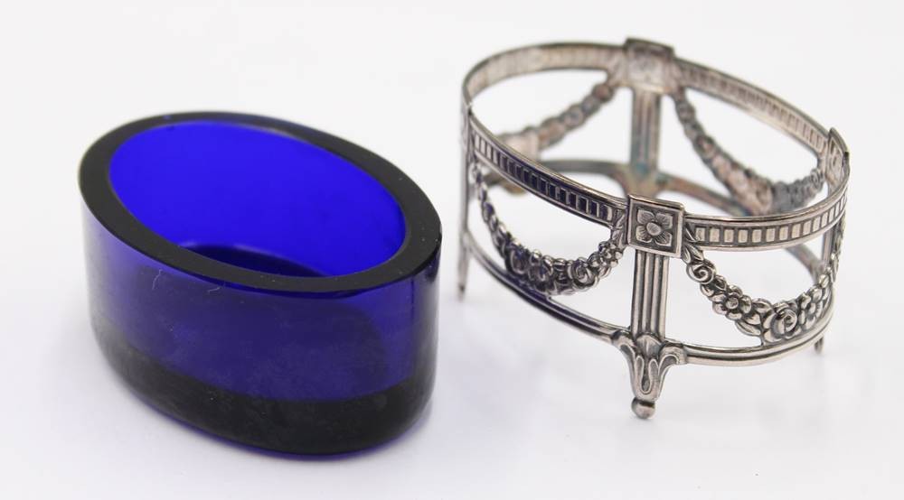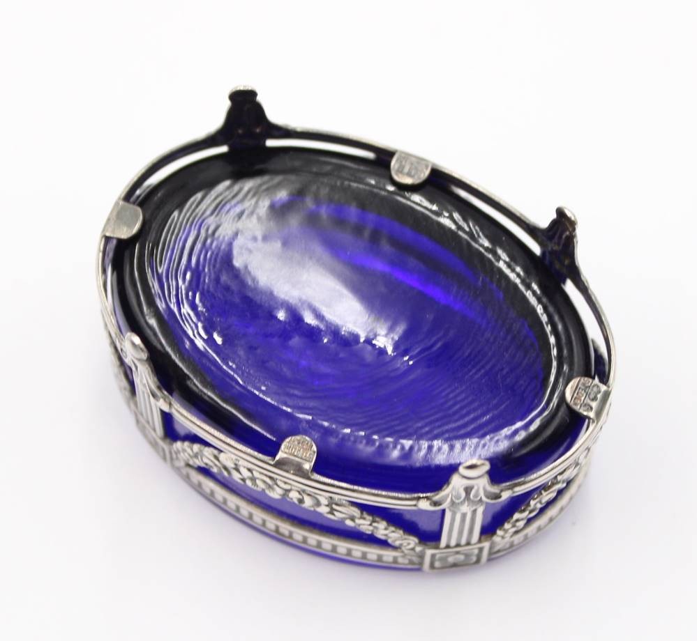 Gewürzschälchen, Gestell Silber-925- mit blauen Glaseinsatz, Sweden, Handarbeit, 14,4 gr. ohne Glas,
