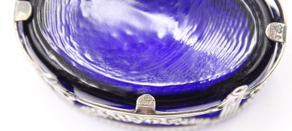 Gewürzschälchen, Gestell Silber-925- mit blauen Glaseinsatz, Sweden, Handarbeit, 14,4 gr. ohne Glas, [1]