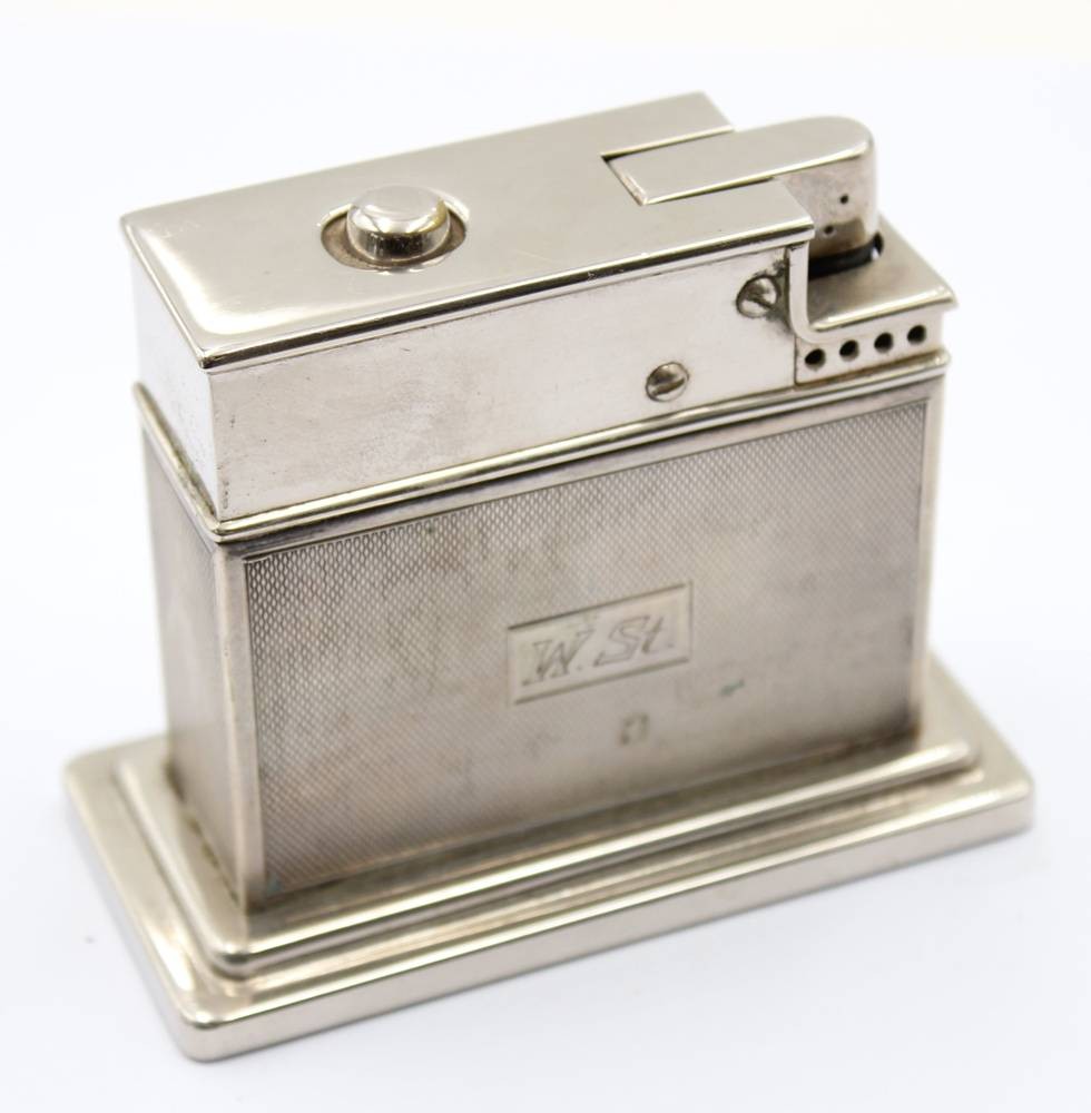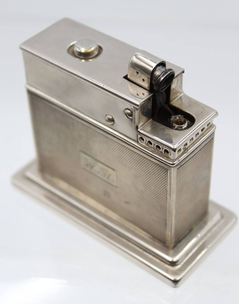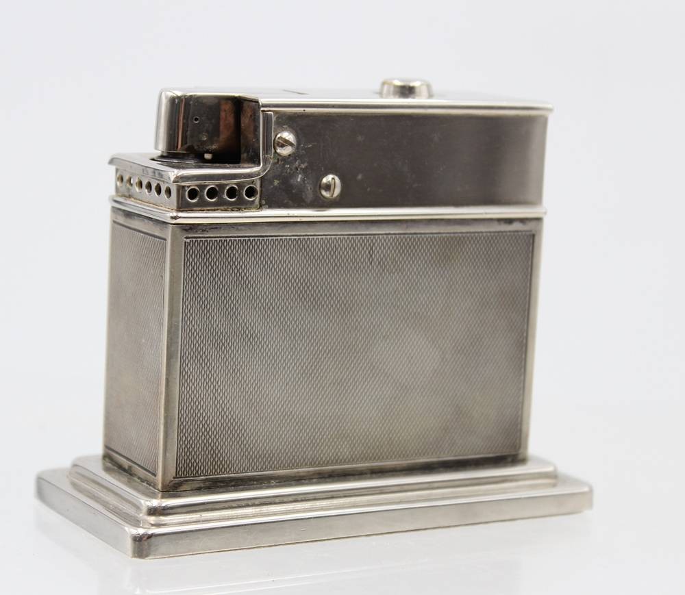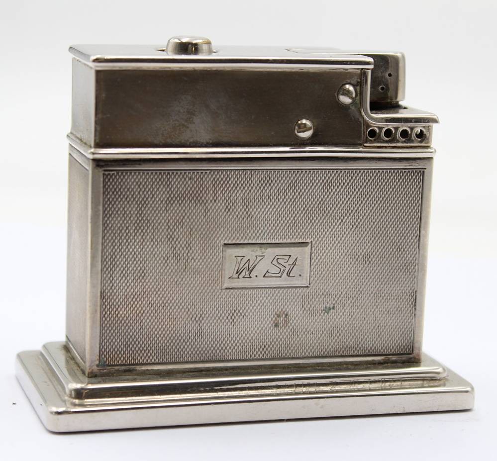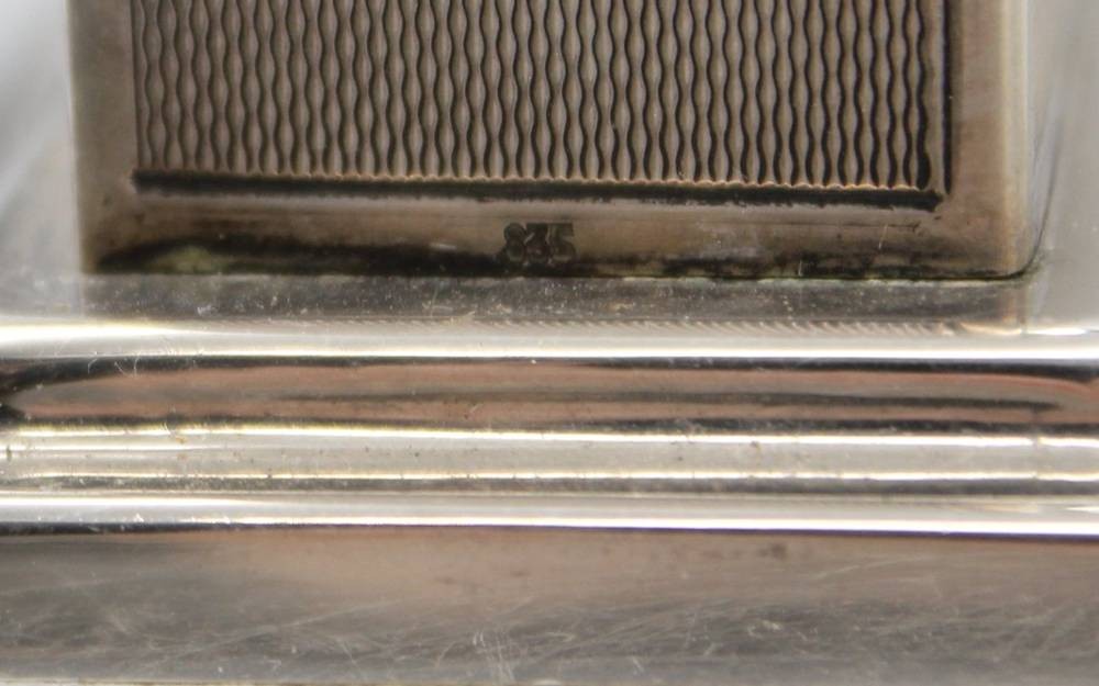 gr. Tischfeuerzeug, 835er Silber, Ziermonogramm, ca. 7 x 9cm, kompl. ca. 218,2gr. [1]