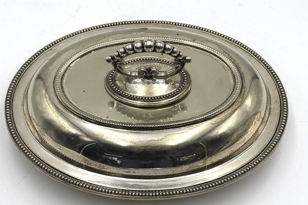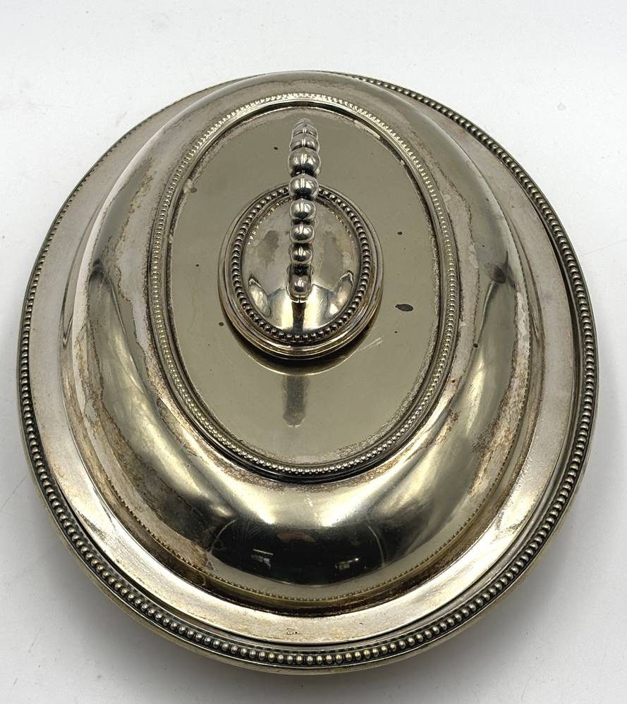 gr. Warmhalteschale, plated, Deckel mit Wechselgriff, gute Erhaltung, 30x23 cm, schwere Qualität [1]