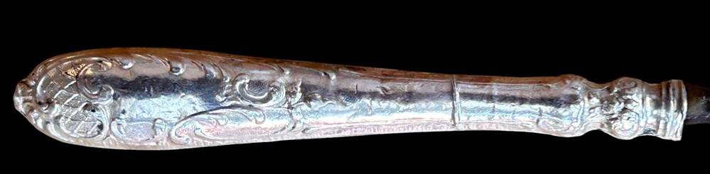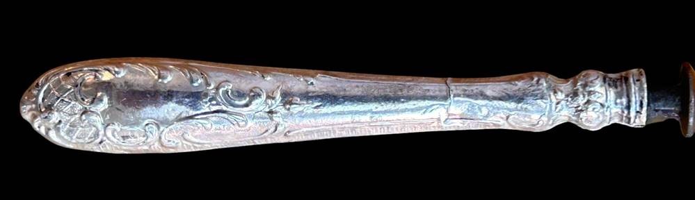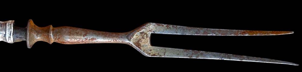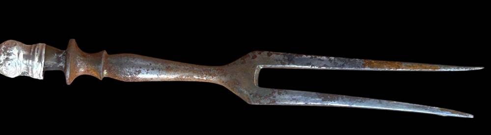 gr. Wurst Vorlegegabel, Griff Silber, Zinken ungepflegtes Eisen, L-21 cm [1]