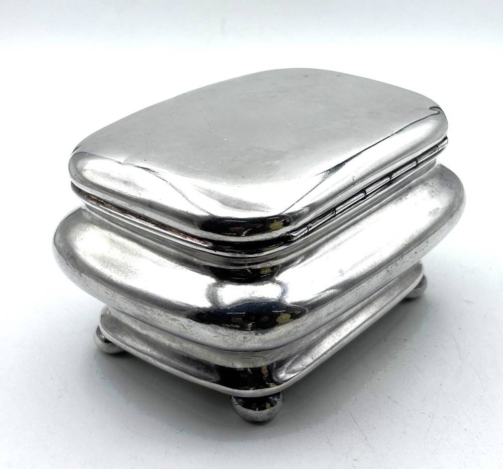 gr. Zuckerdose mit Schloss, plated, ohne Schlüssel, gut erhalten, H-8 cm, 14x10 cm [1]
