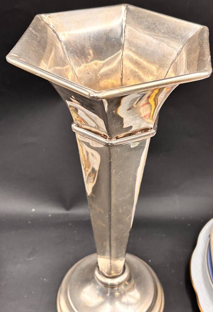 grosse, versilberte Vase, H-35 cm, D-oben 17 cm, minimale Dellen [1]
