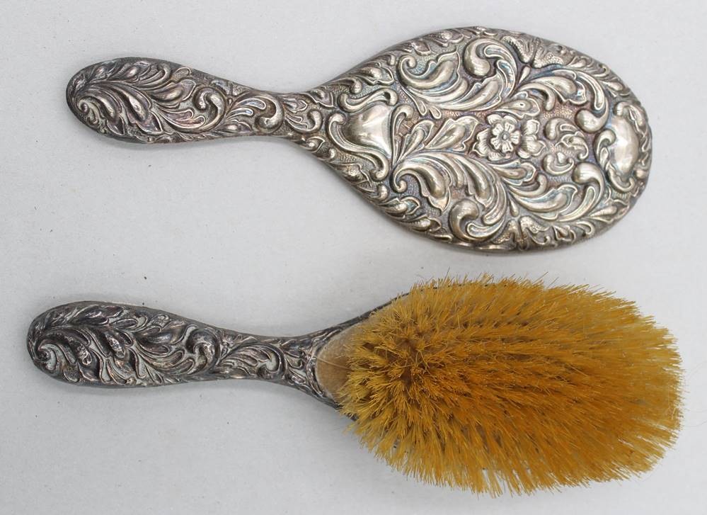 Handspiegel und Kleiderbürste, Silber gepr., älter, ca. L-23cm [1]