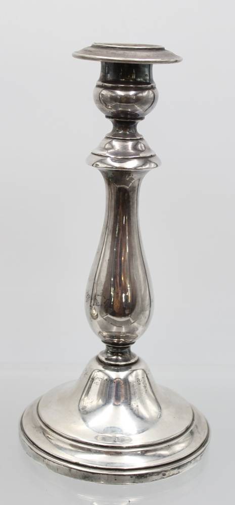 hoher Leuchter, versilbert, Stand innen undeutl. Punze, H-22cm