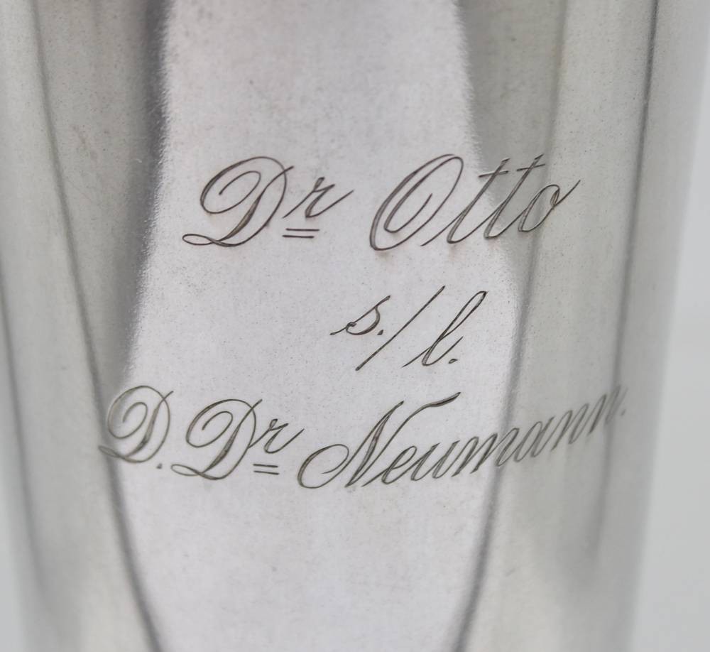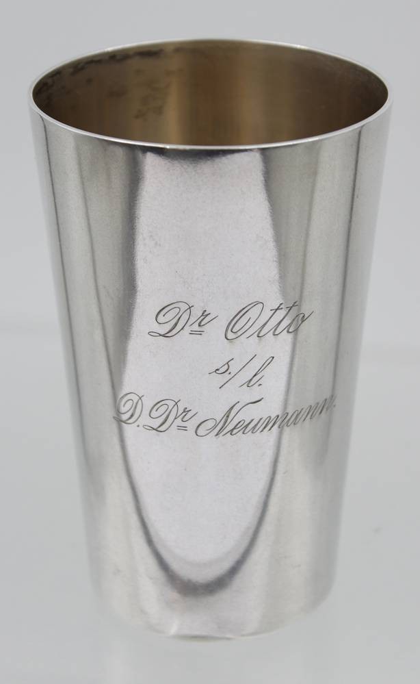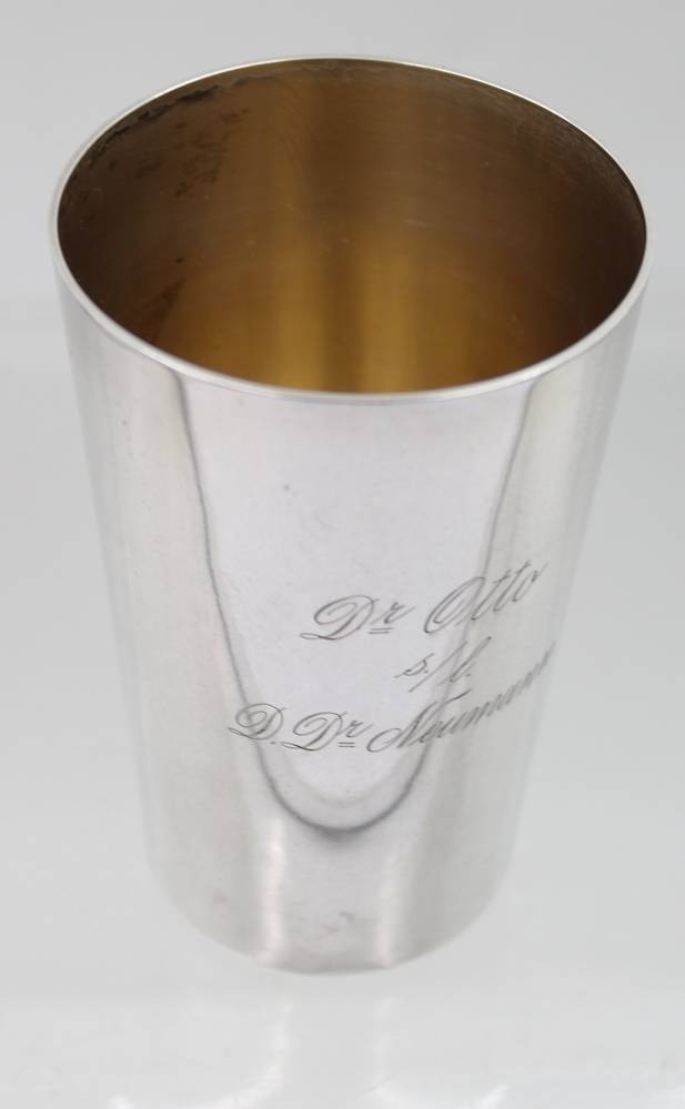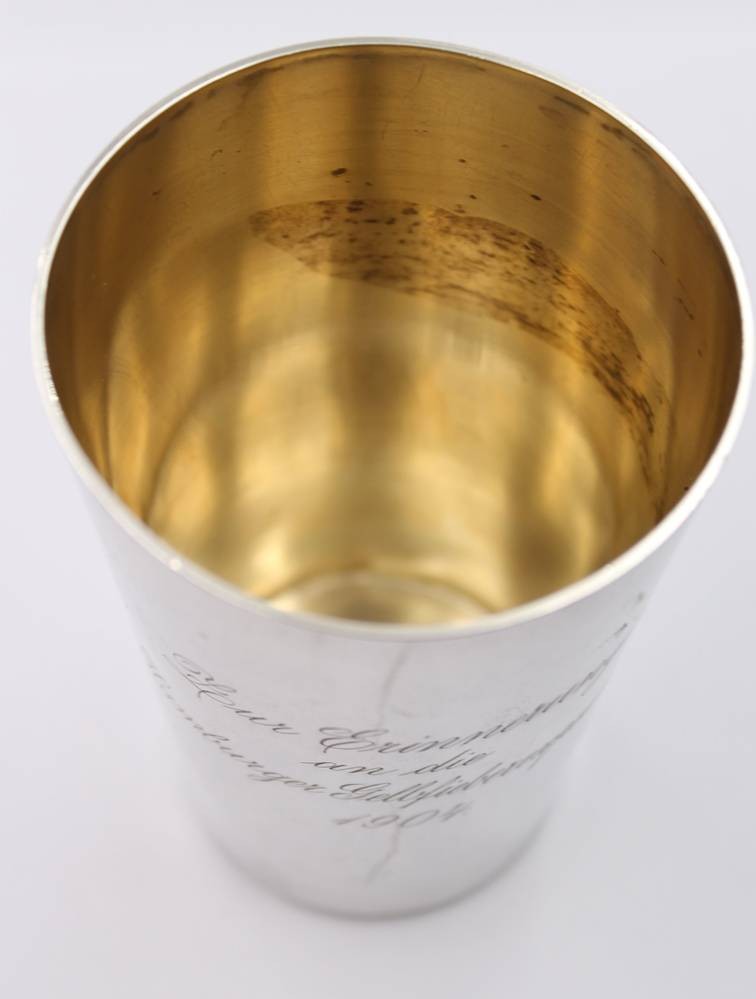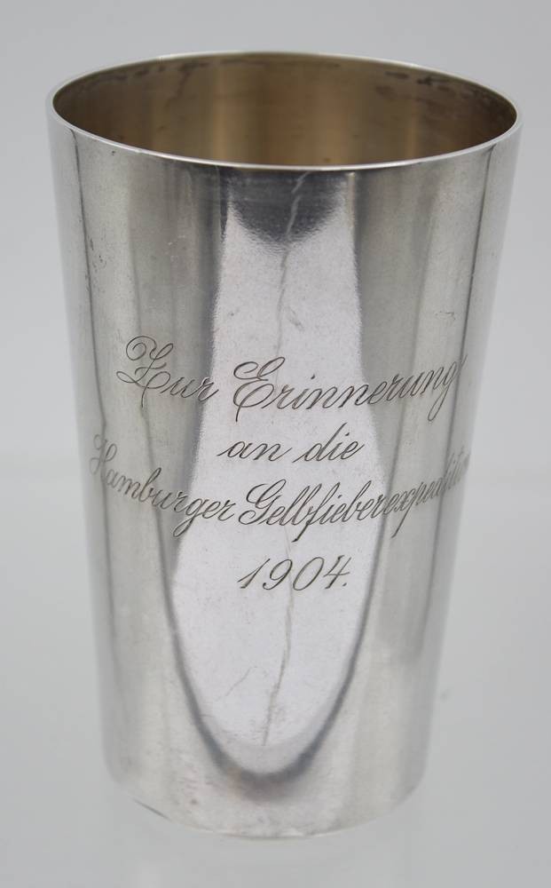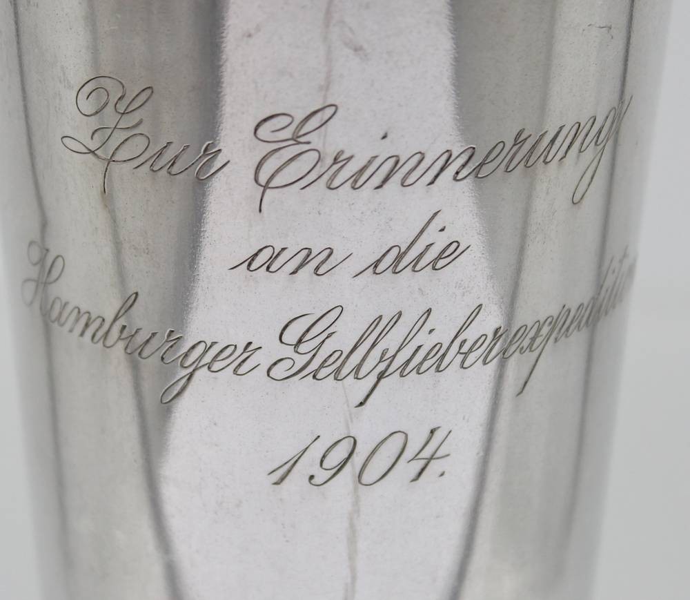 hoher Silber-Becher, 800er, Gravur "Zur Erinnerung an die Hamburger Gelbfieberxpedition 1904"m 172,6gr. , H-12,2cm [1]