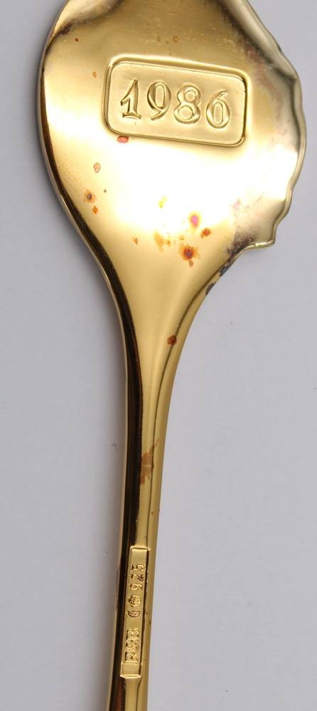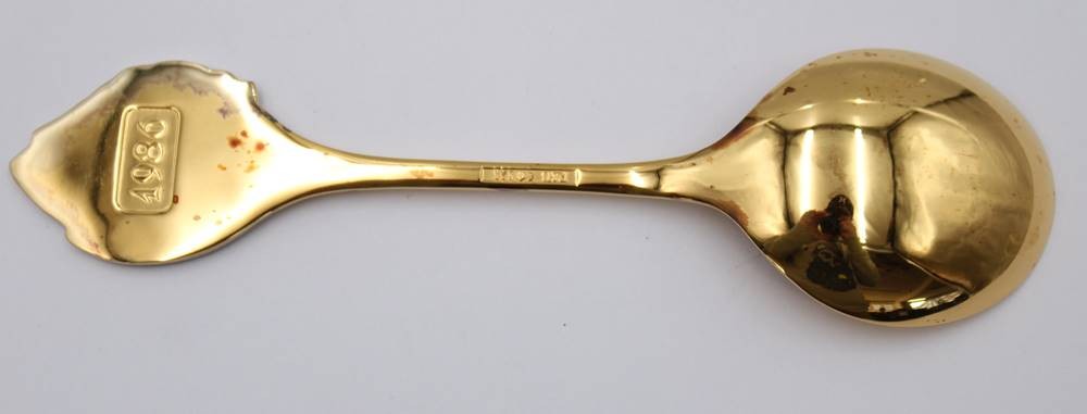 Jahreslöffel, Robbe & Berking, 1986, 925er Silber vergoldet, 63,3gr., L-ca. 17,5cm [1]