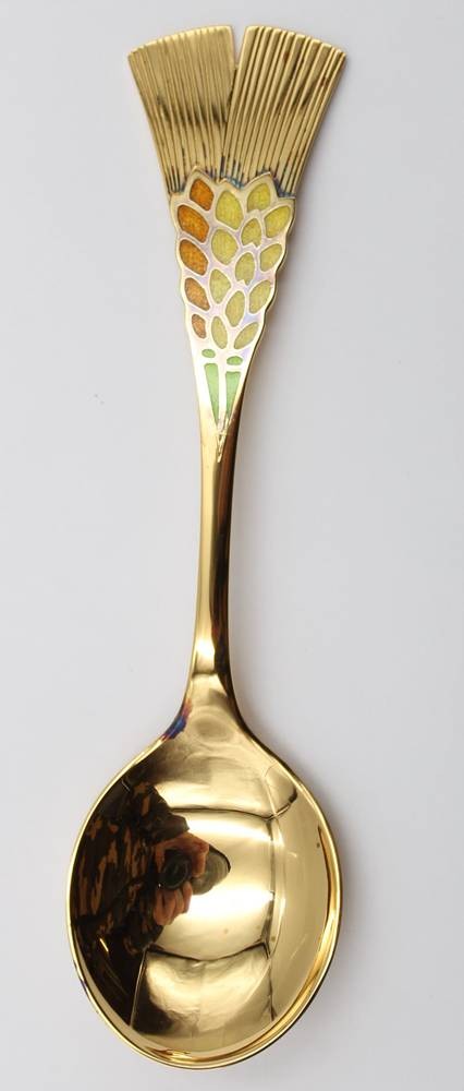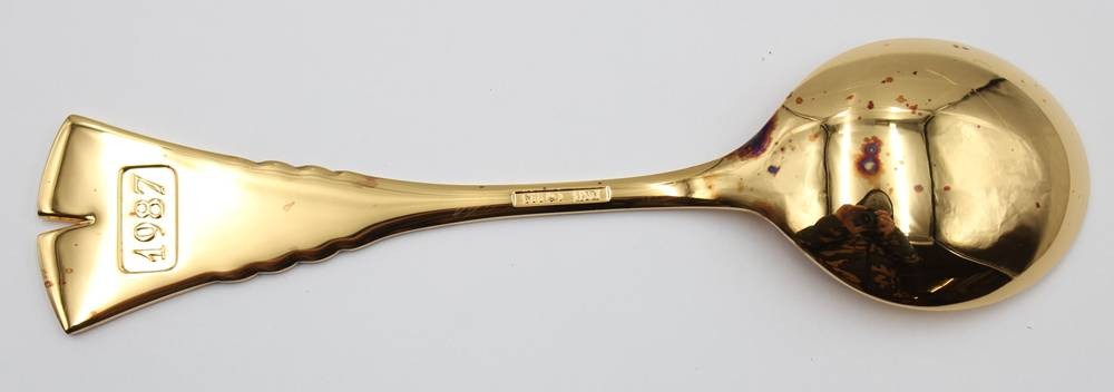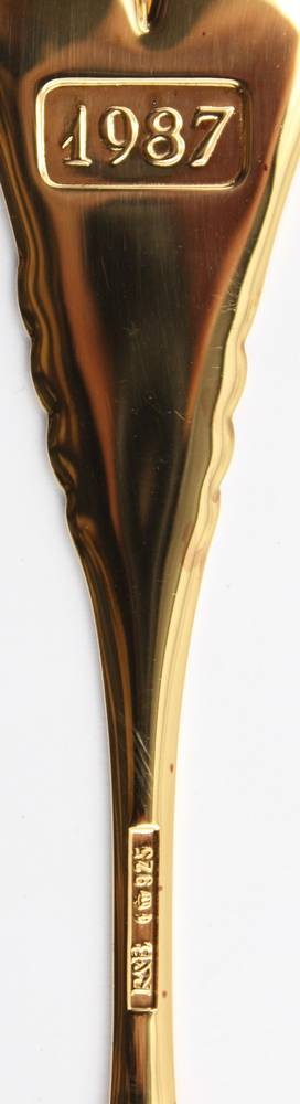 Jahreslöffel, Robbe & Berking, 1987, 925er Silber vergoldet, 69,2gr., L-17,5cm, leichte Lagerrungsspuren [1]