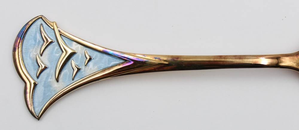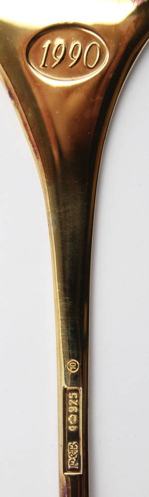 Jahreslöffel, Robbe & Berking, 1990, 925er Silber vergoldet, 64,9gr., L-17cm [1]