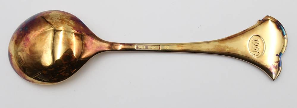 Jahreslöffel, Robbe & Berking, 1990, 925er Silber vergoldet, 64,9gr., L-17cm