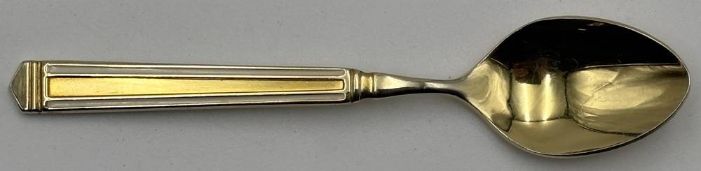 Kaffeebesteck "Hanseat" vergoldet und emailliert, Kuchenheber, 11 Kuchengabeln, 12 Kaffeelöffel, einige Teile Emaille beschädigt, grossteil aber gut erhalten, 24 Teile [1]
