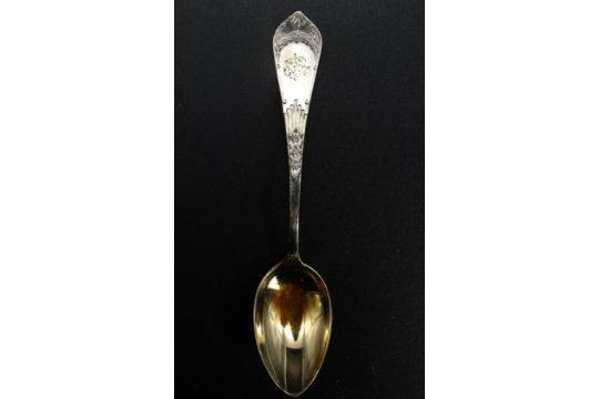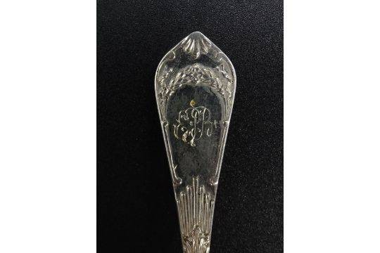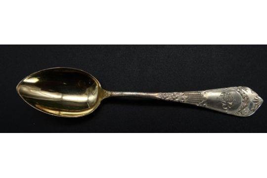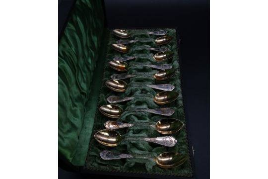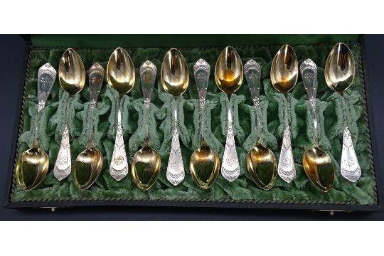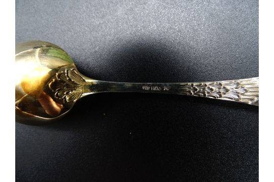Kaffeelöffel Set bestehend aus 12 Löffel , Silber 800 Halbmond u. Krone Punziert , Monogramm E B , Laffe vergoldet , L- 11,2 cm, 150 gr., in Kasten [1]
