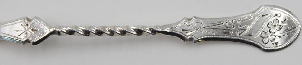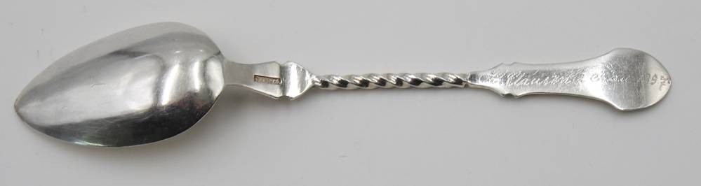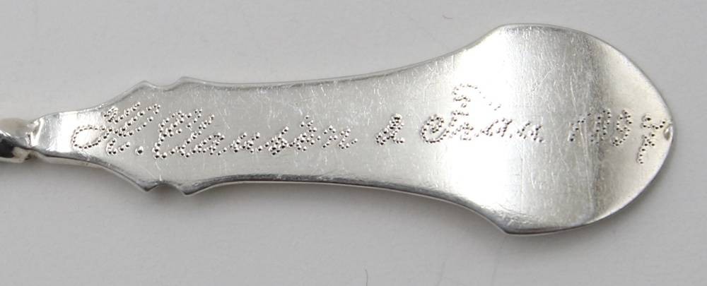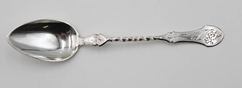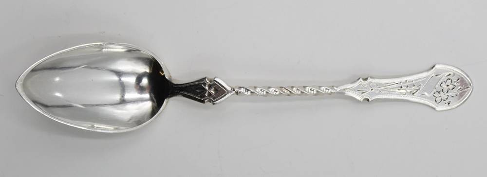 Kaffeelöffel, Silber, zieseliert, verso Punktgravur und datiert 1897, 10gr., L-12,5cm [1]