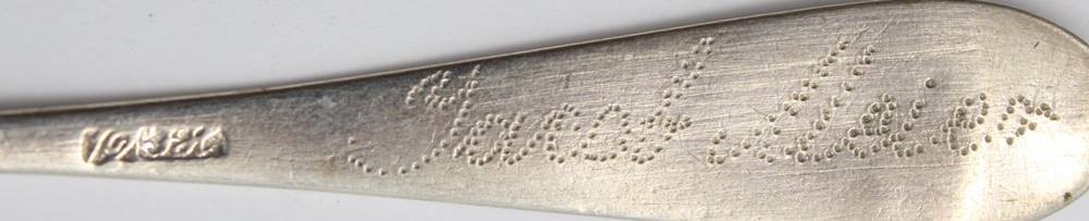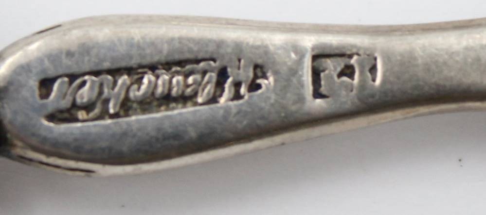 Kaffeelöffel und kl. Heber, je 12lötiges Silber, 1x Punktgravur und 1x Ziermonogramm, ca. 13 und 17,3cm [1]