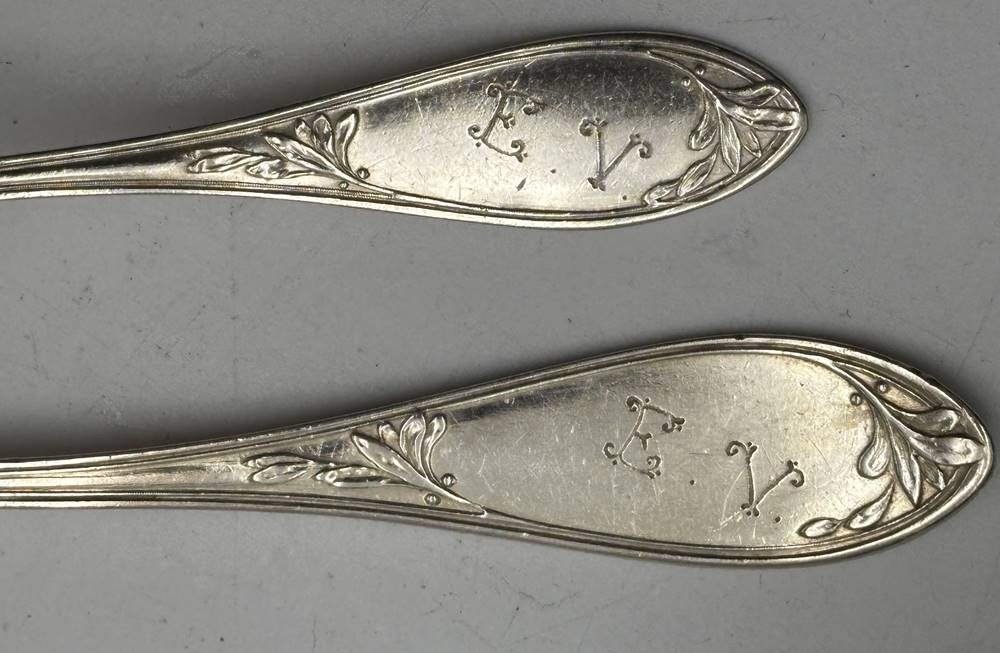 kl. Löffel und Breischieber, Silber-800-, Monogramm, zusammen 49 gr [1]