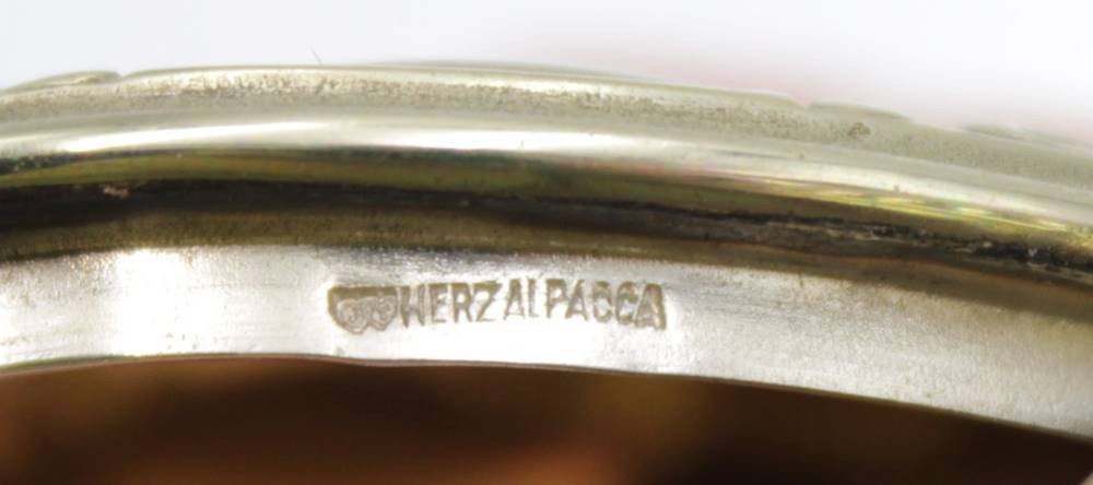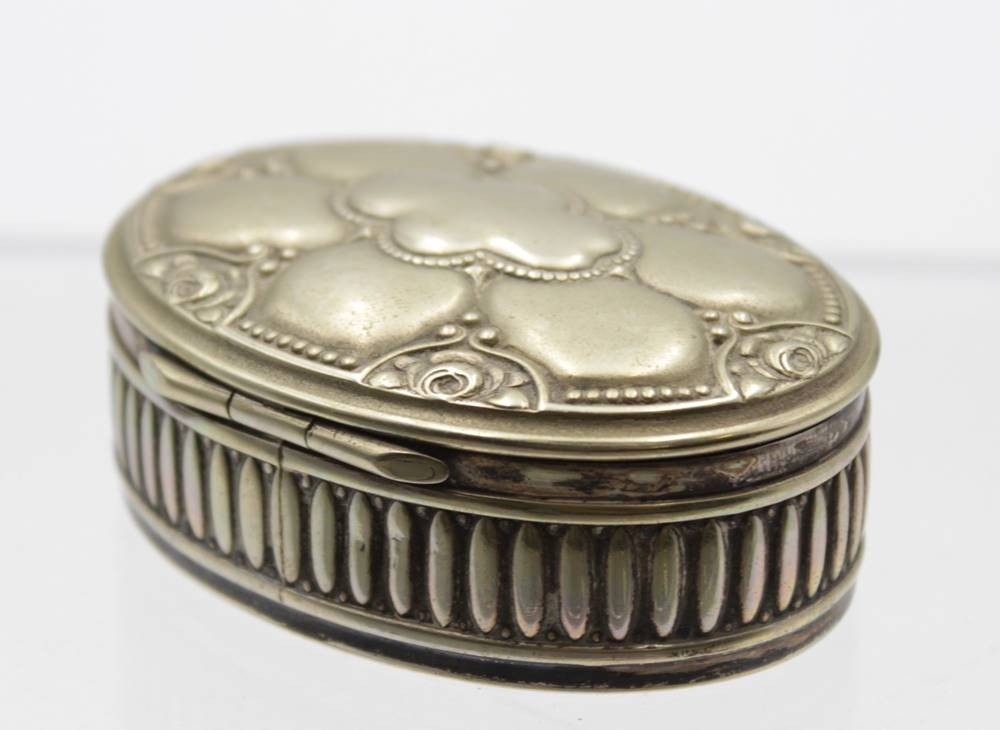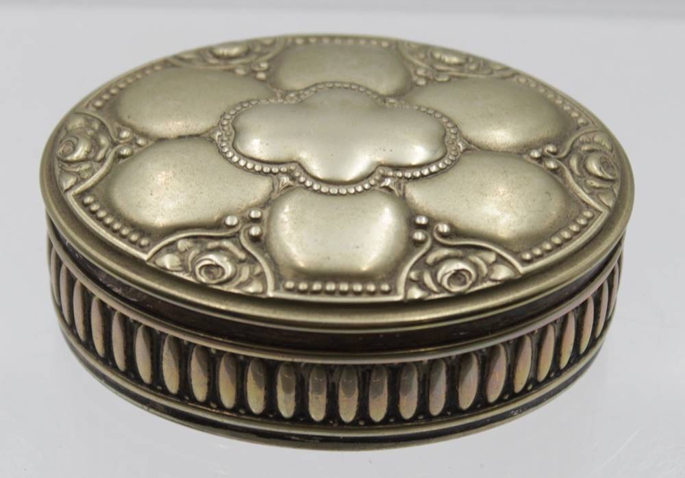 kl. ovale Dose um 1920, Herz-Alpacca, H-2,8cm, B-7cm. [1]