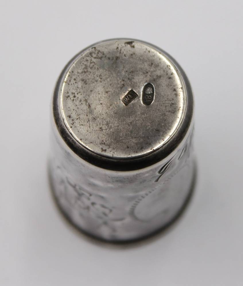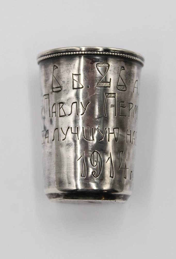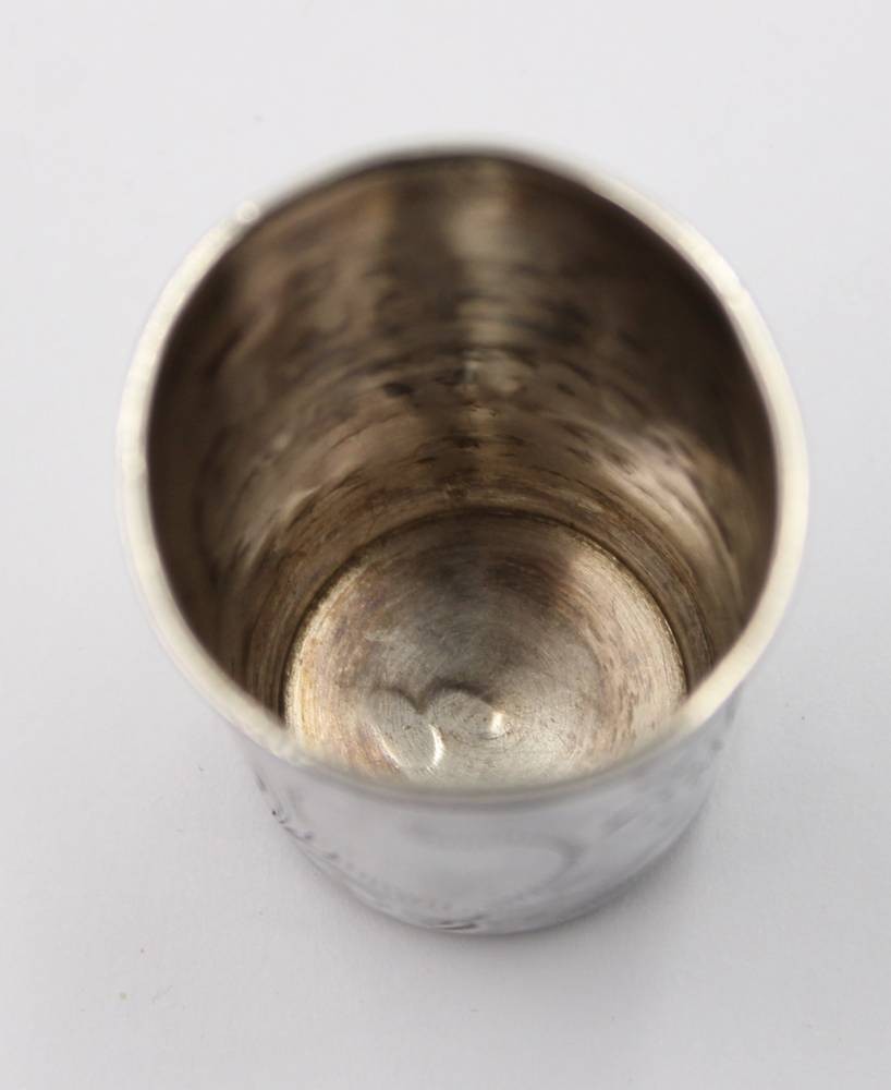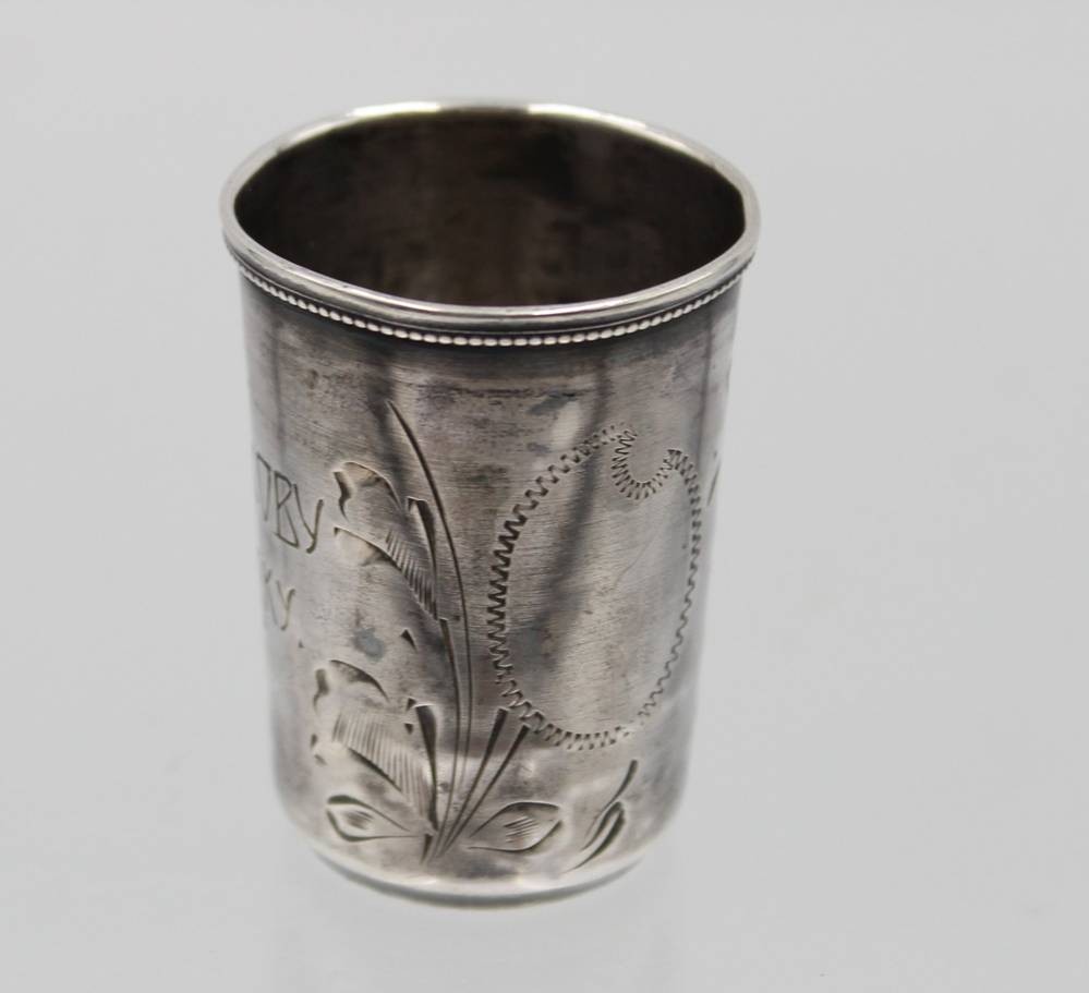 kl. russischer Becher, Silber -84-, mit kyrill. Widmungsgravur von 1914, 12,6gr., H-4cm [1]