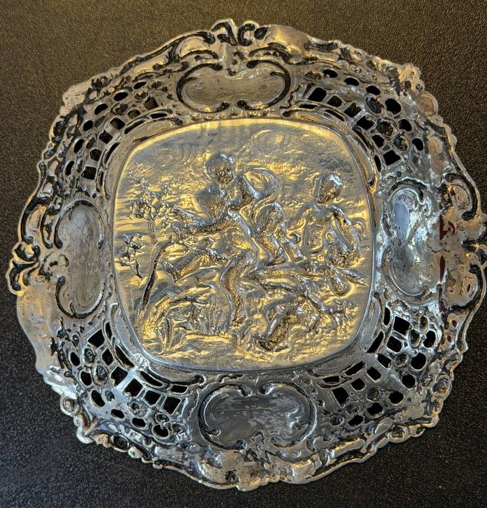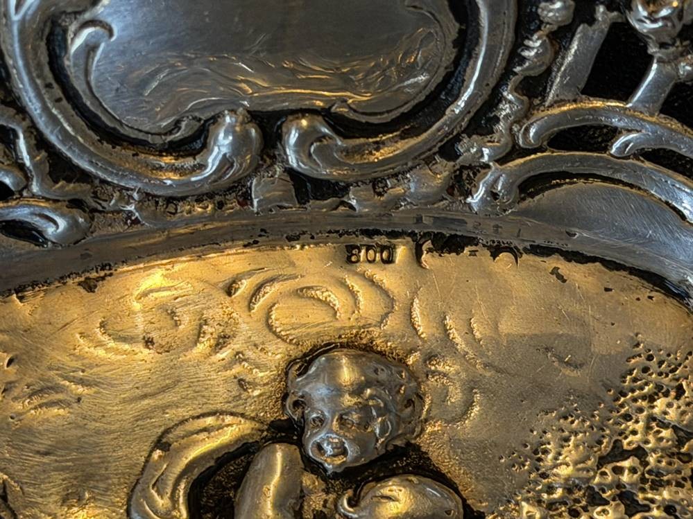 kl. Silberschale mit spielenden Putti, Silber-800-, wohl Hanau, D-13 cm, 84 gr. [1]