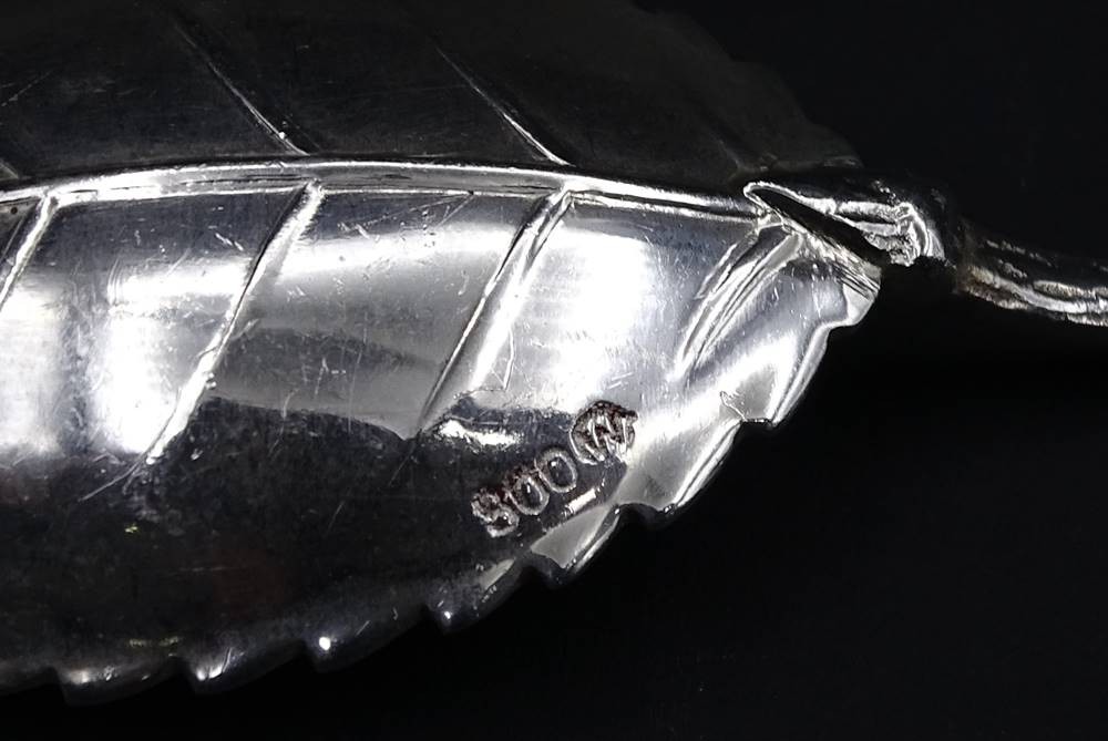 kleiner Dessertlöffel Hildesheimer Rose aus Silber , Punziert 0,800 , L. 11 cm , 10,5 g [1]