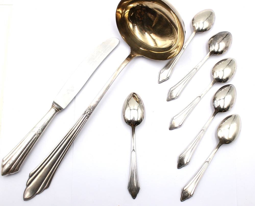 Konvolut Fächermuster, WMF, 90er Auflage, Messer, Suppenkelle und 6x Kaffeelöffel [1]