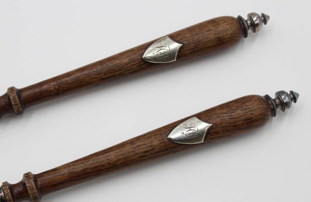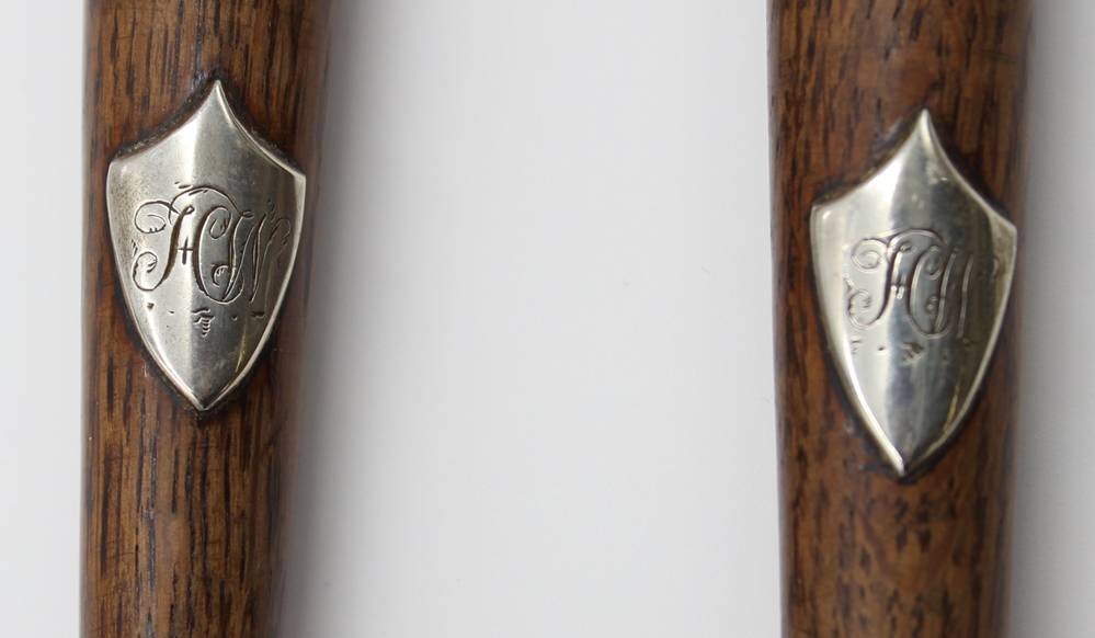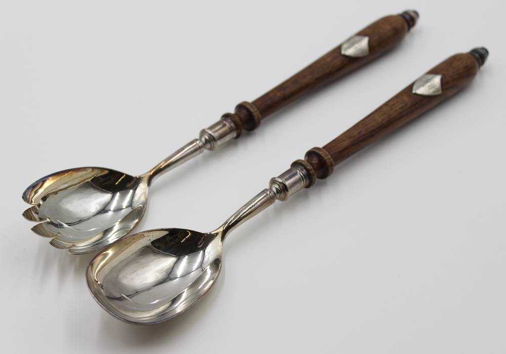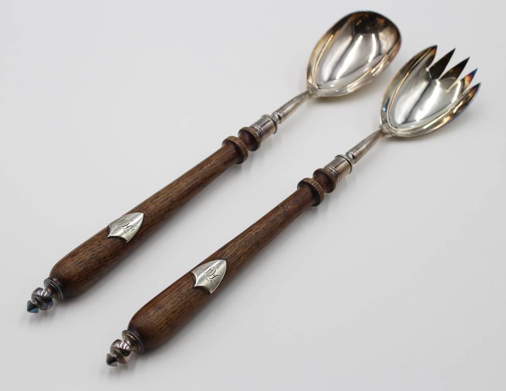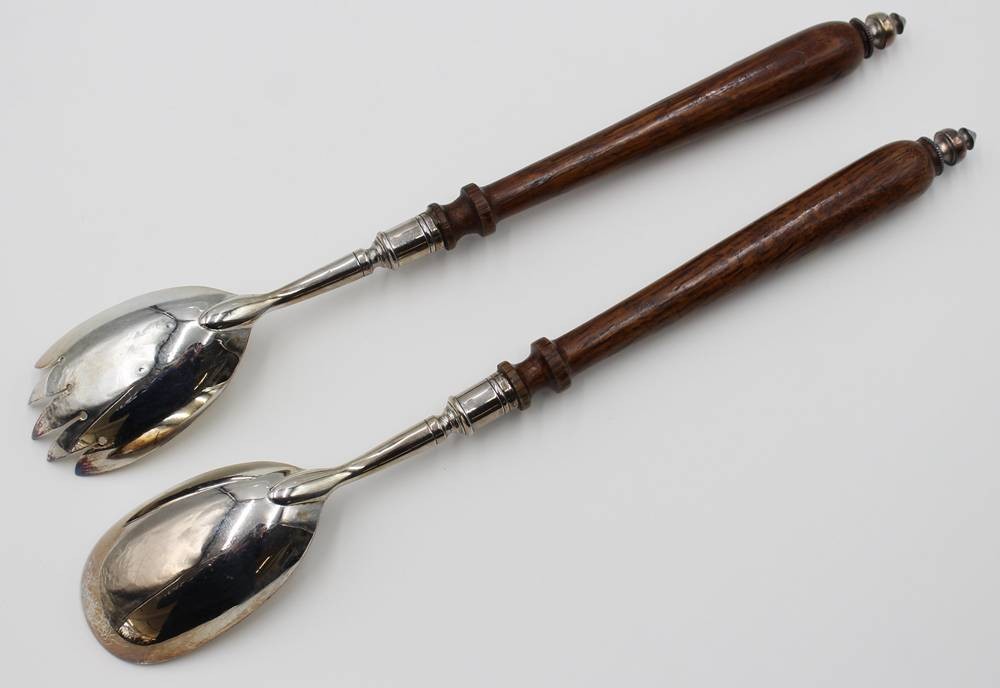 langstieliges Salatbesteck, Silber (gepr.), Holzgriffe, ca. L-32,5cm [1]