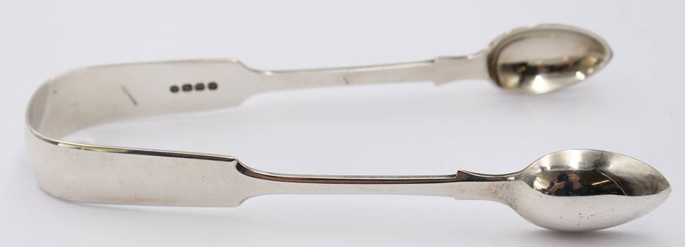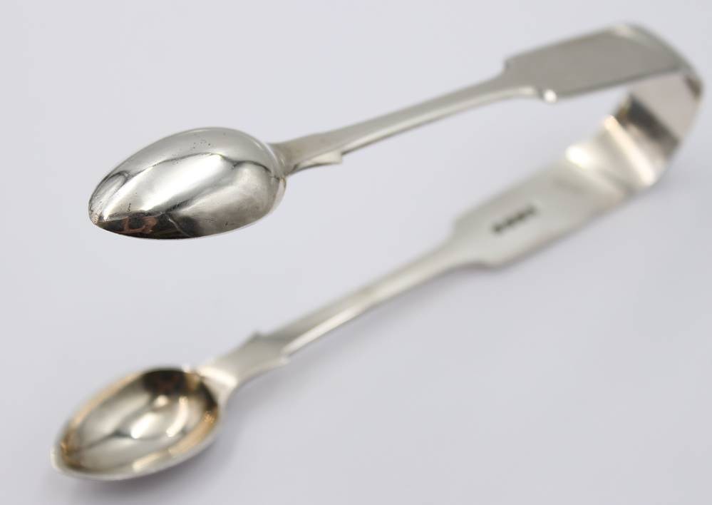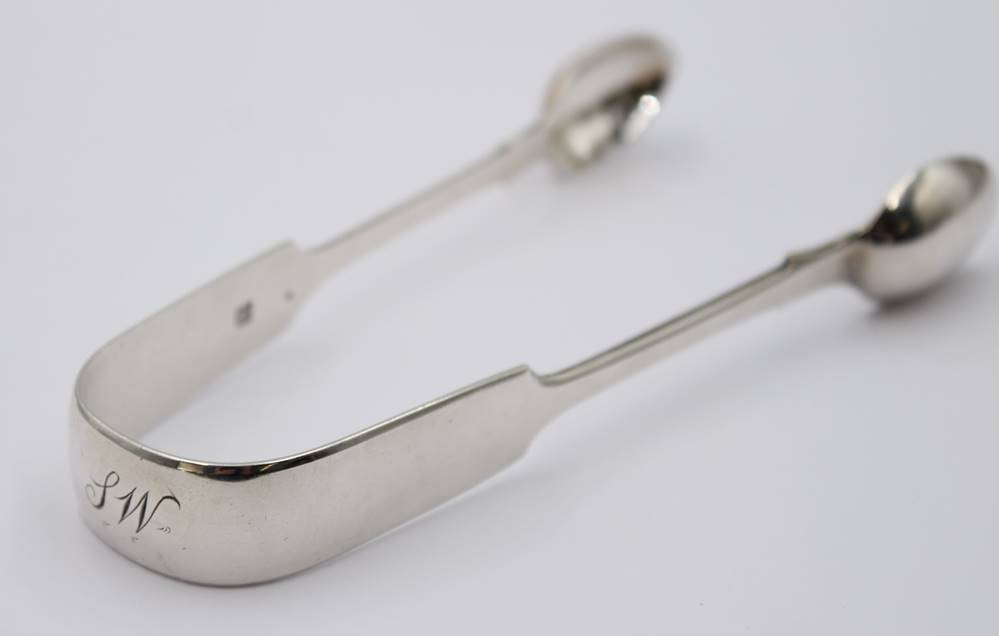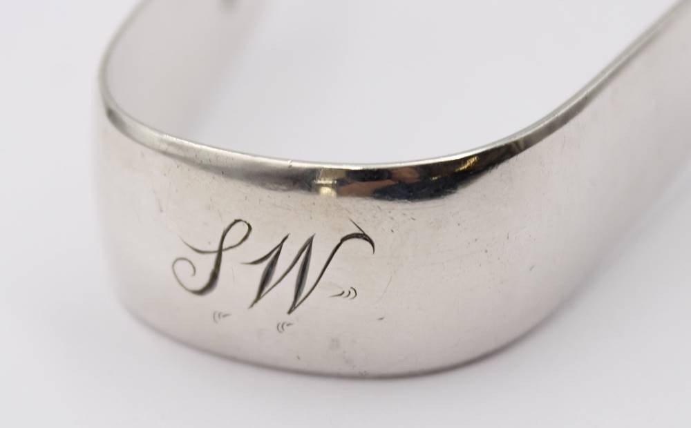 massive englische Silber Zuckerzange, 68 gr. Monogramm, div. Punzen, L-15 cm [1]