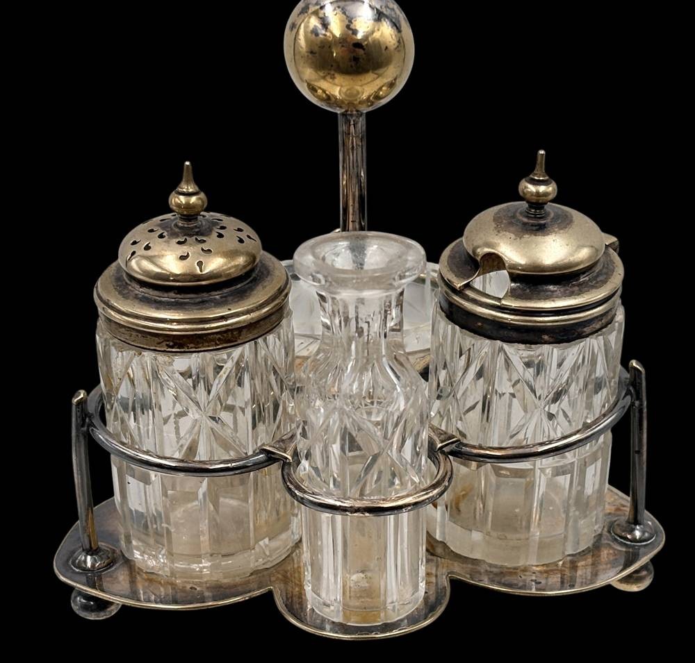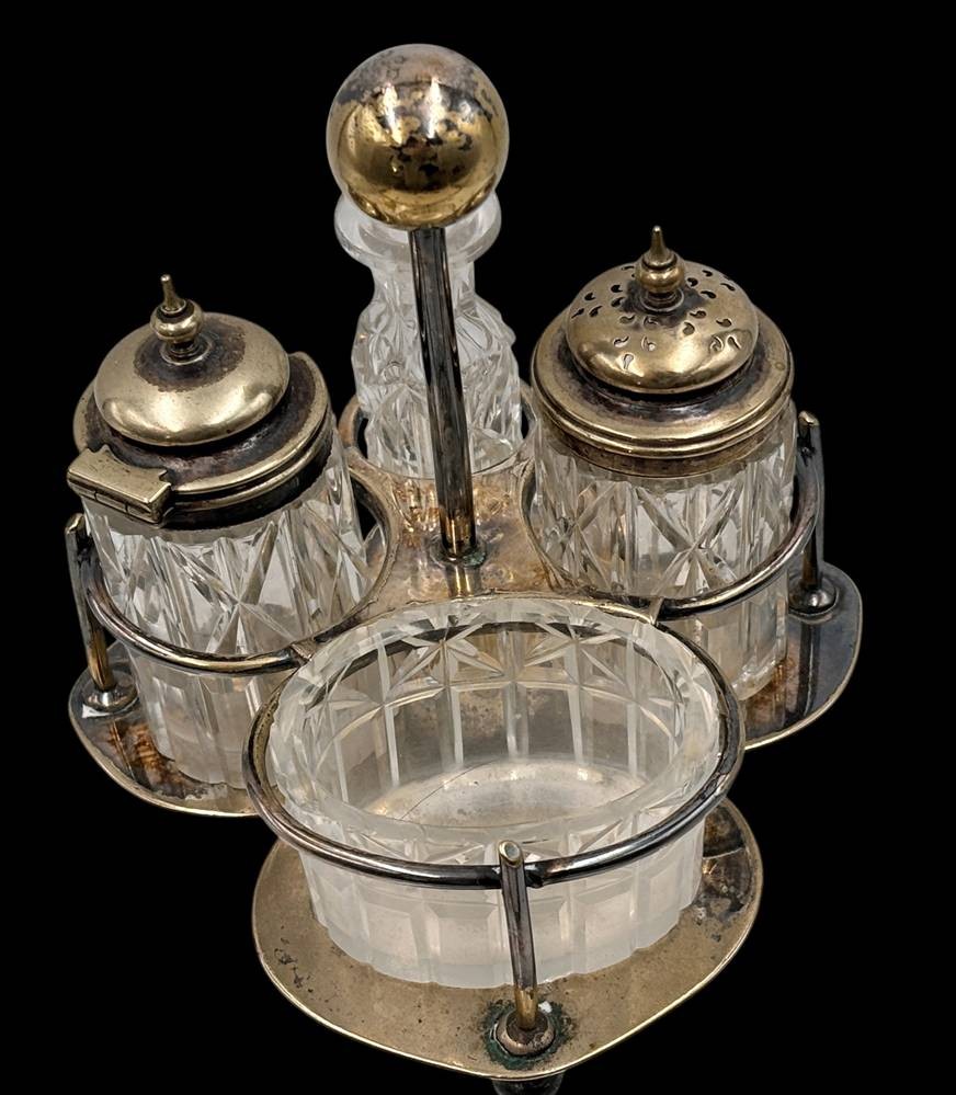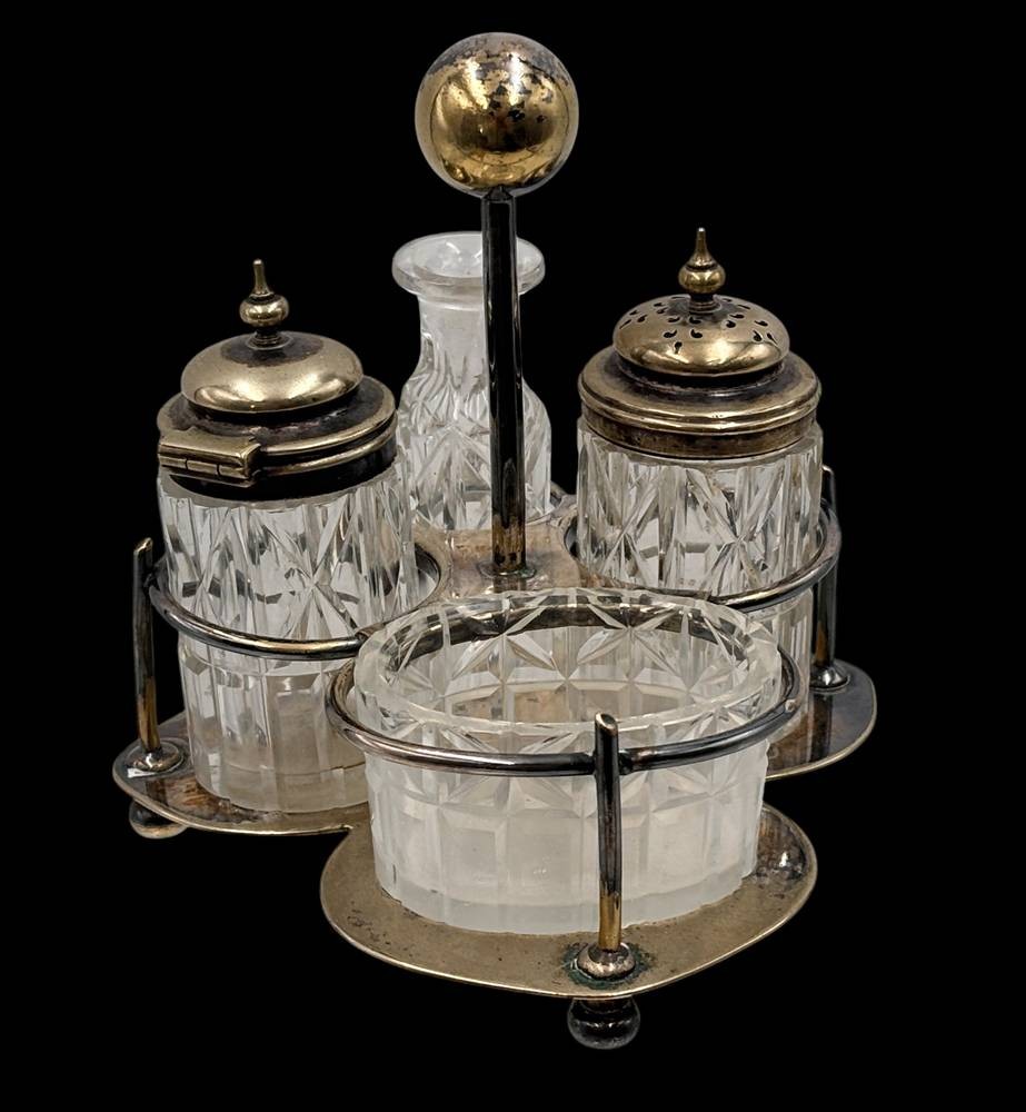 Menage, plated, England, H-13 cm, 4x Glasgefässe [1]