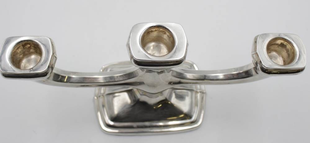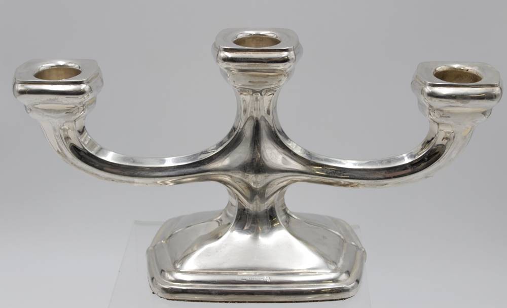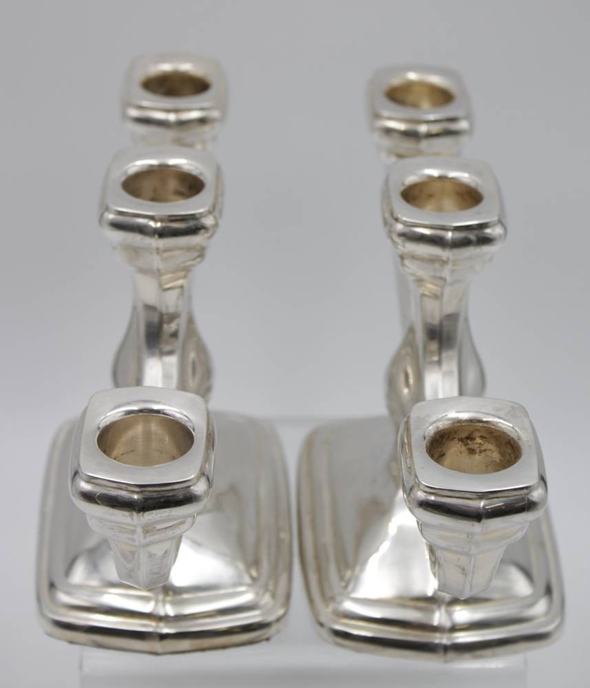 Paar 3flammige Leuchter, Sterling, je gefüllter Stand, zus. ca. 914gr., je H-14cm B-28cm. [1]