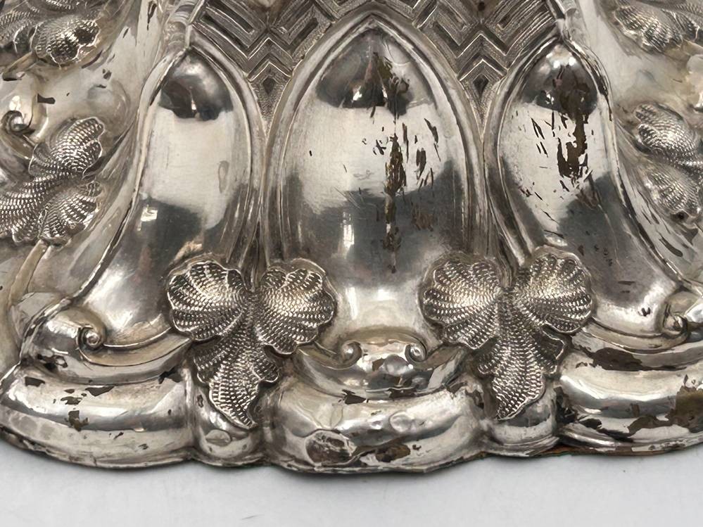 Paar Biedermeier-Tafelaufsatze, Milchglas mit Goldstaffage, dünnes Silber-Blech gefüllt, Goldstaffage gut erhalten, H-20 cm, D-19 cm [1]