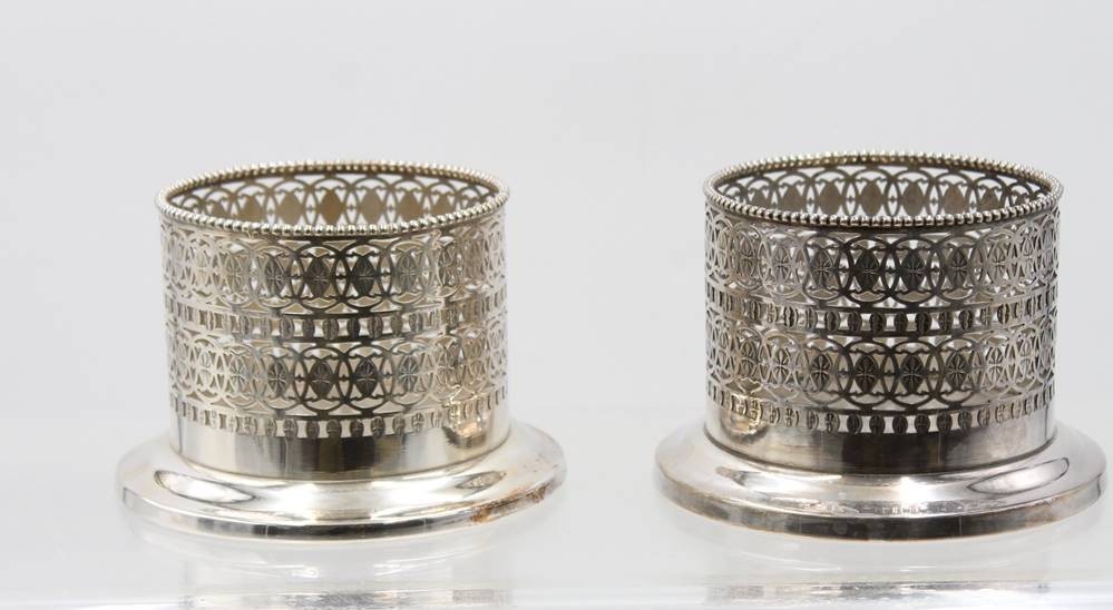 Paar Flaschenhalter, Jürst, versilbert, 1x Druckstelle, ca. H-8,8cm [1]