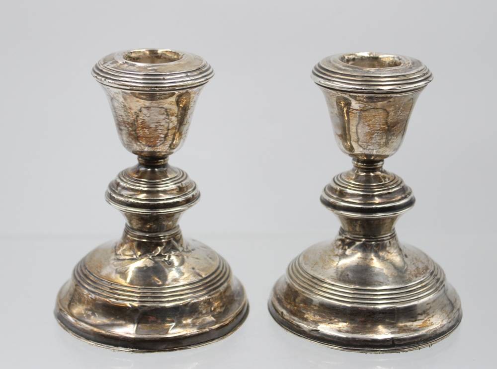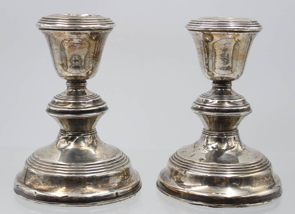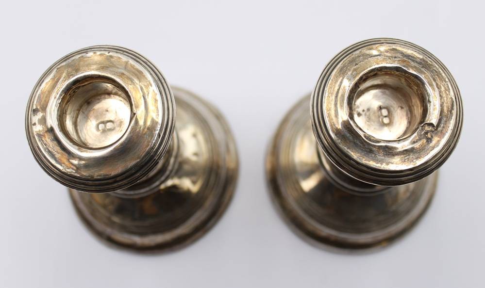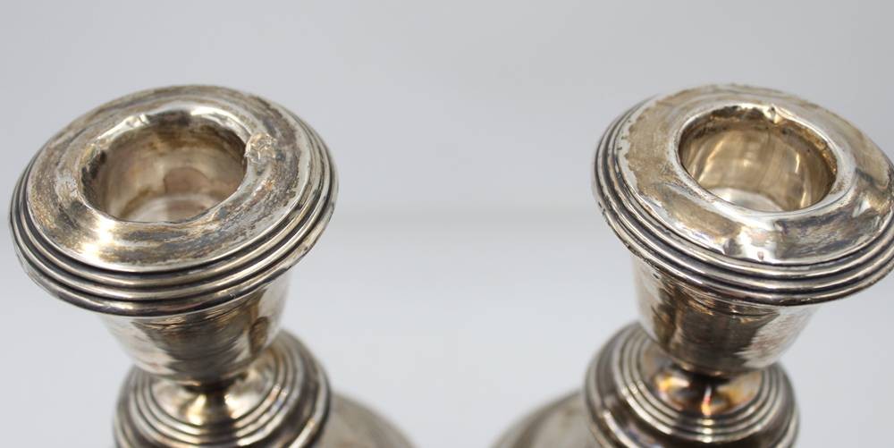 Paar Leuchter, Sterling, England, gefüllter Stand, starke Druckstellen, ca. H-12,5cm [1]