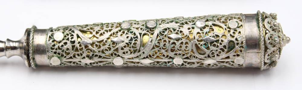 Paar Vorlegegabeln, filigran gearbeitete Silber-Griffe , älter, Altersspuren, L-17,5cm [1]