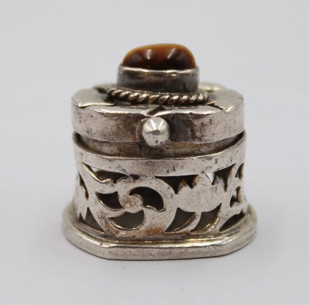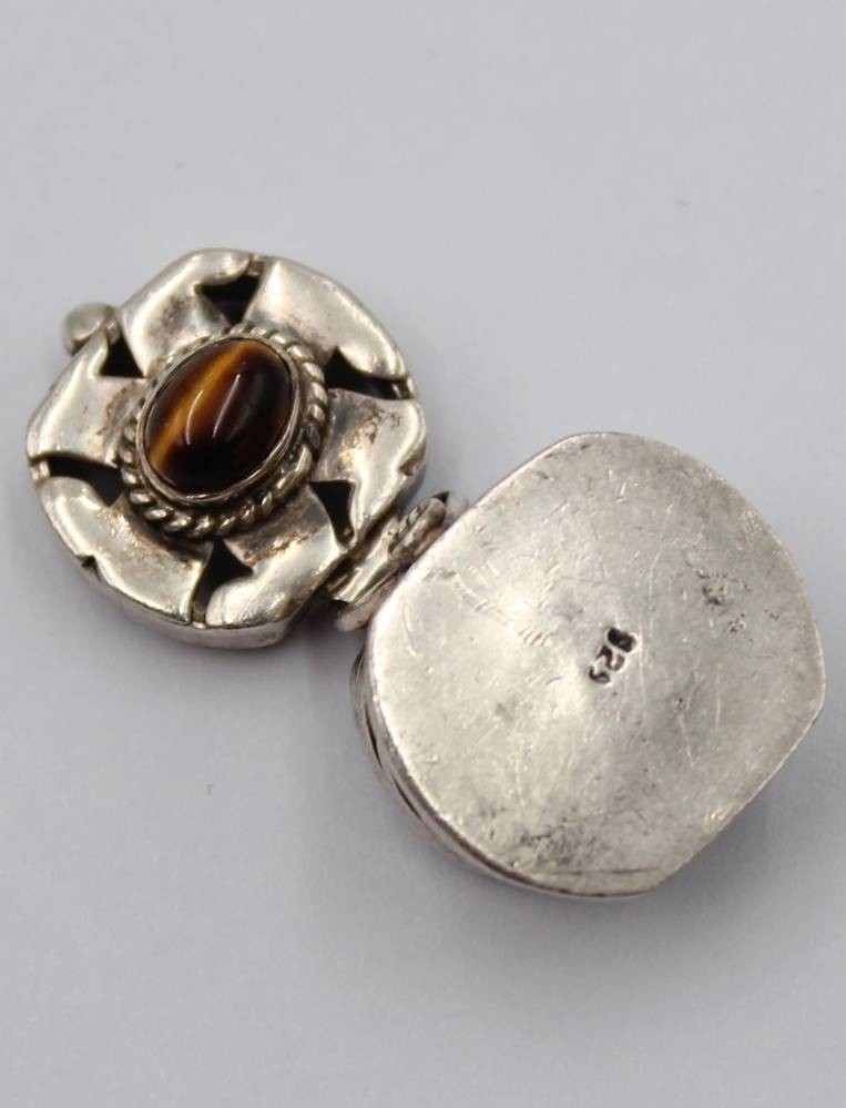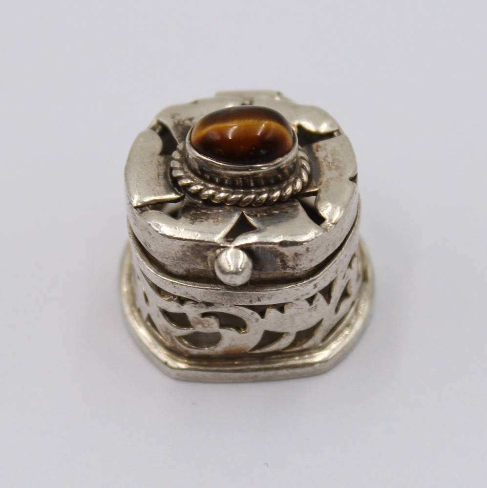 Pillendose, 925er Silber, Deckel mit Tigerauge, 7,1gr., H-1,8cm [1]