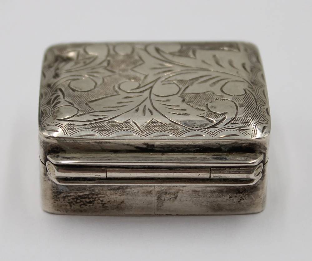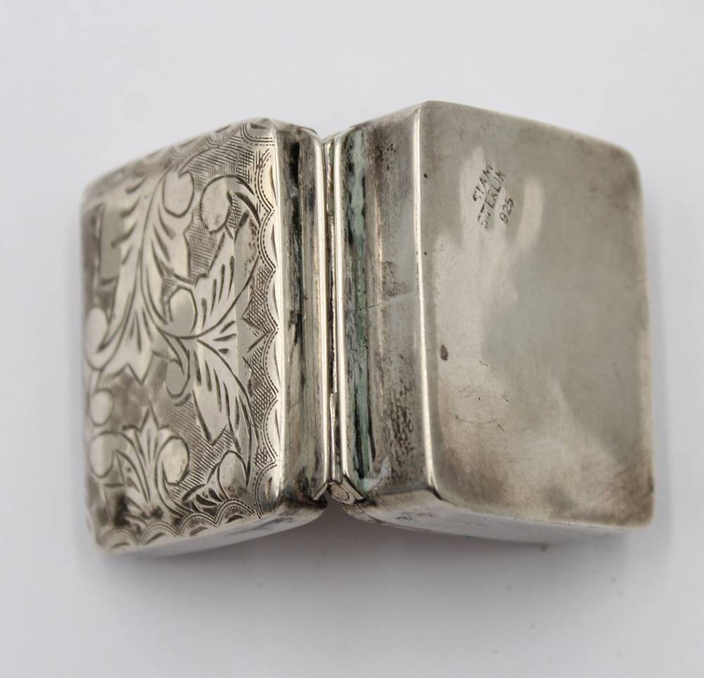 Pillendose, Sterling, älter, Druckstellen, ca. H-1,6cm B-3,5cm, 14,6gr.
