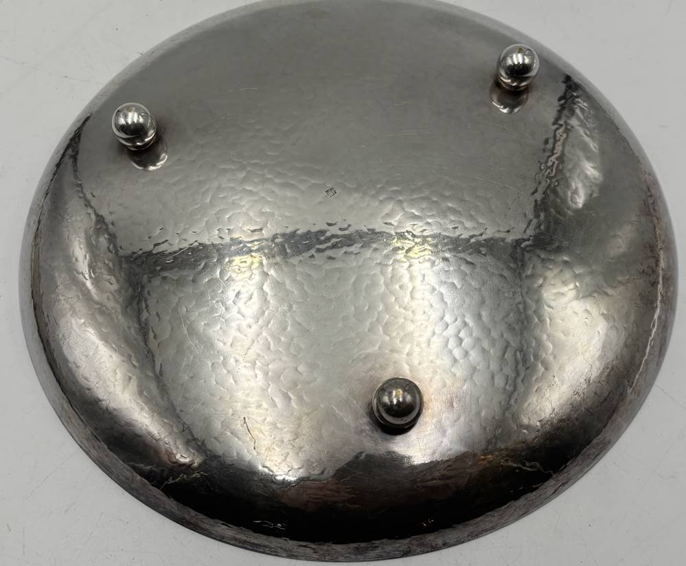 Plated Schale "Floreat" Hammerschlagdekor, 3 Kugelfüsschen, sehr guter Zustand, 397 gr., D-23 cm [1]