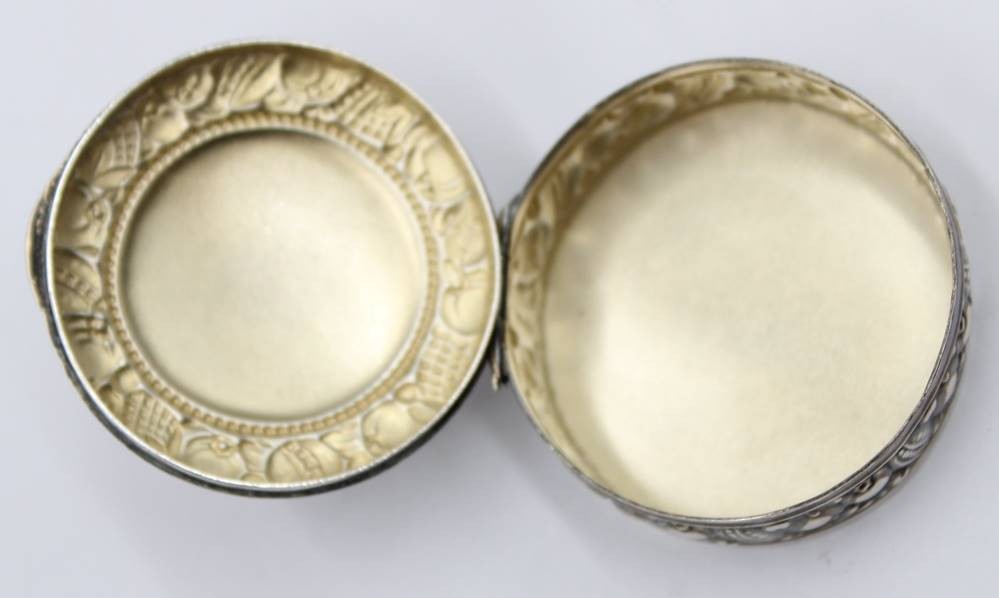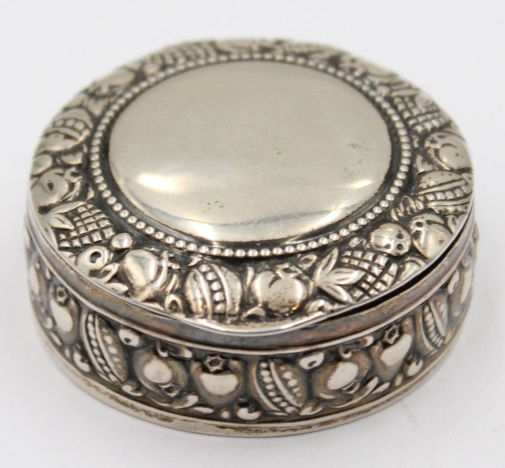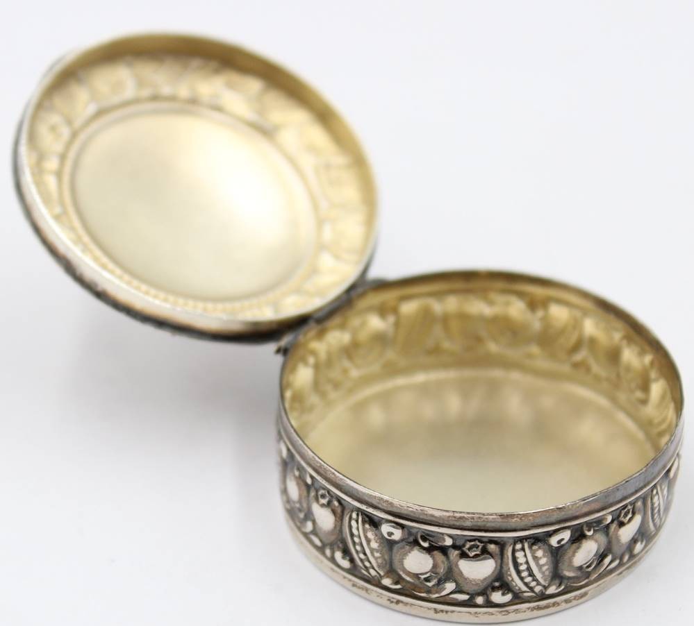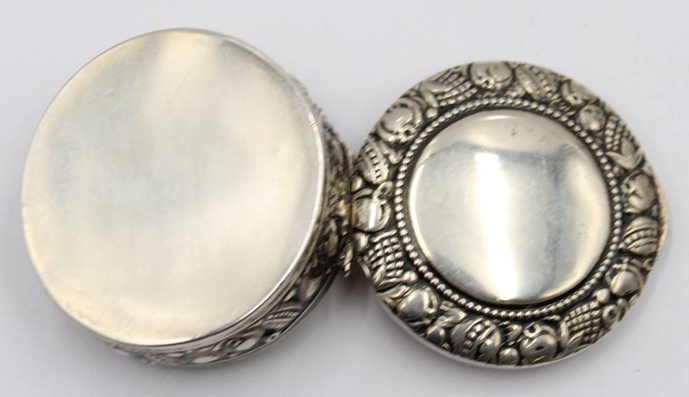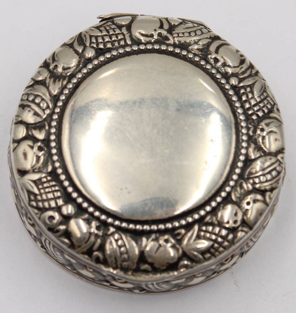 runde Pillendose, Silber-830-, H-1,5 cm, D-4,5 cm, ca. 19,5 gr [1]