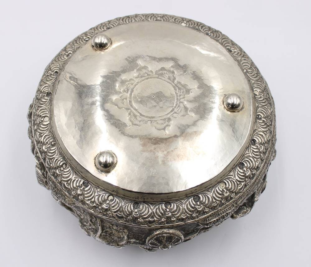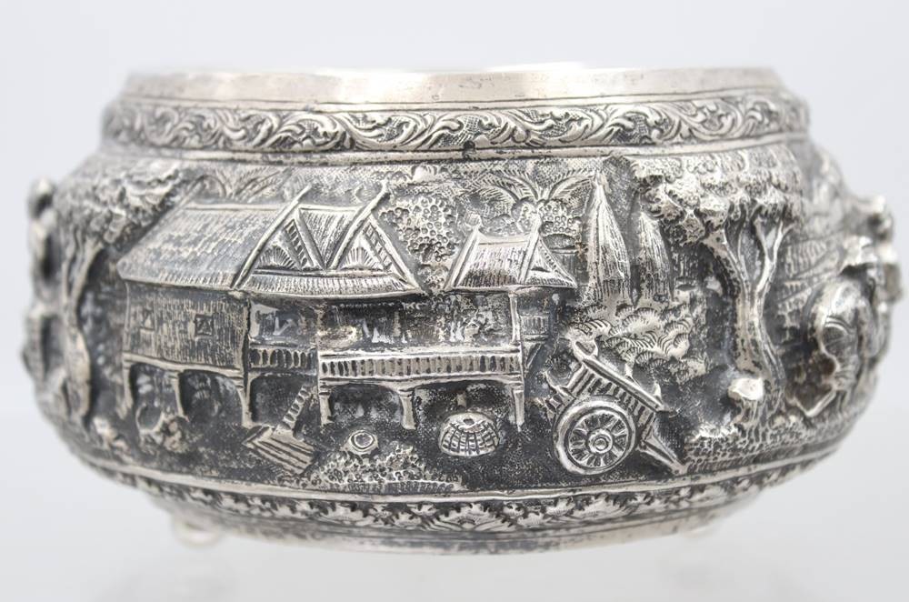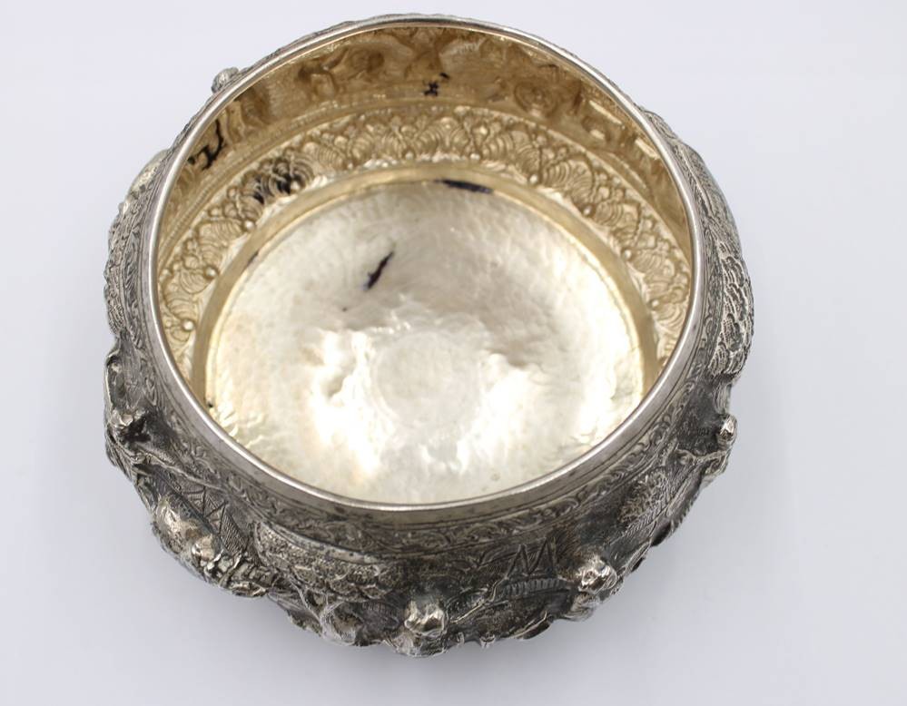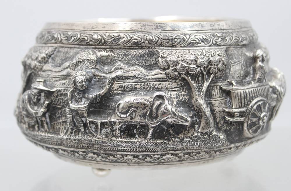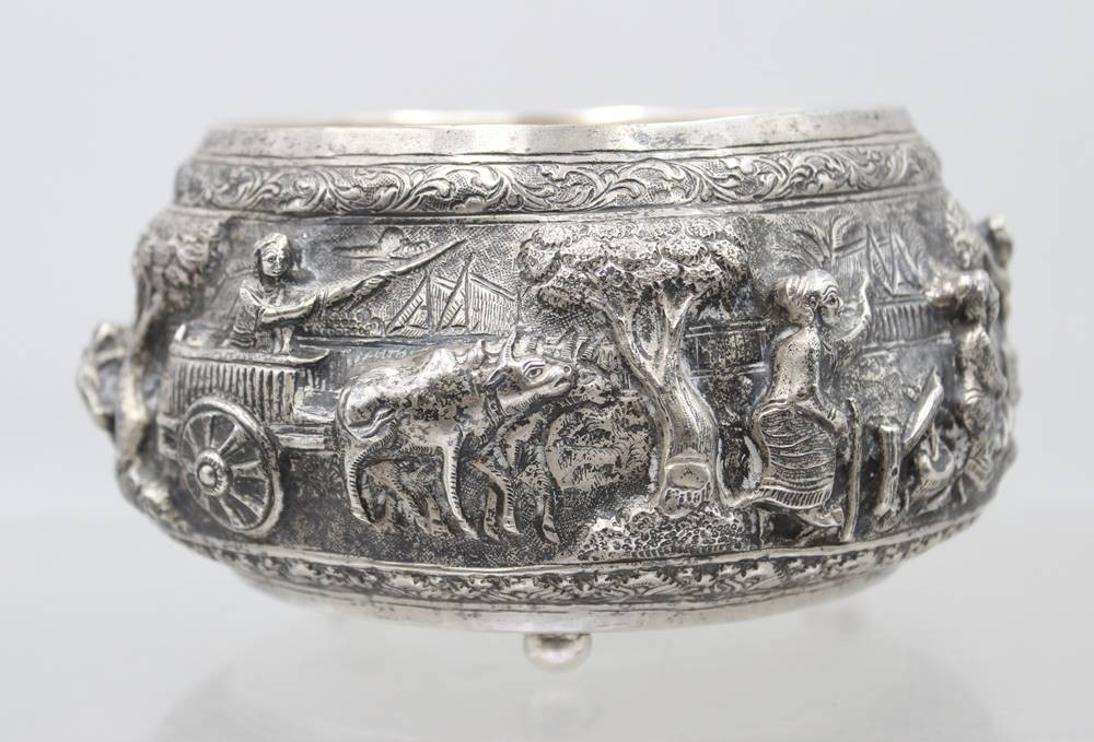 runde Silber-Schale, Reliefdekor, Ostasien, 297,3gr., H-8,5cm D-15,5cm [1]