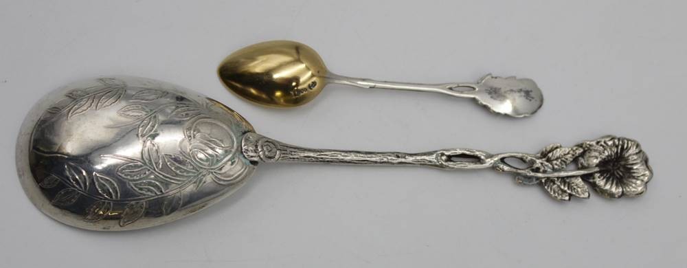 Sahnelöffel und Mokkalöffel, 800er Silber, Rosenmuster, zus. 39,4gr-, ca. L-17,8cm und 9,4cm. [1]