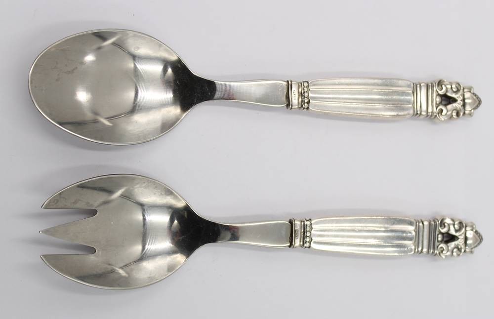 Salatbesteck Georg Jensen, Silber-925-, Acorn, zus. 150 gr [1]