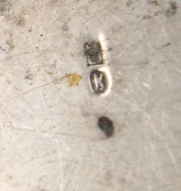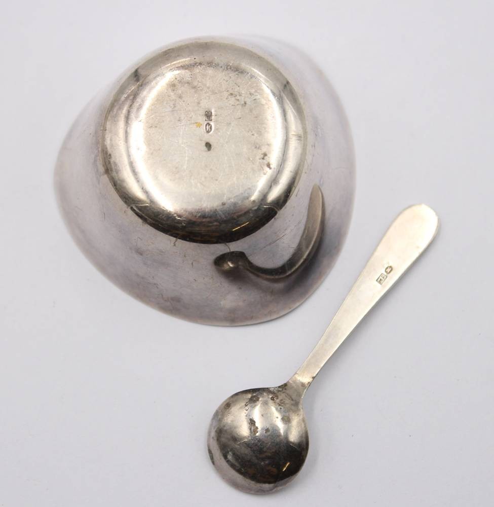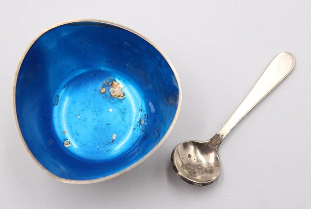 Saliere mit kl. Löffel, Silber, innen blaue Emaille diese beschädigt, Silber, wohl Dänemark, 31,4gr., H-2,5cm D-5cm [1]