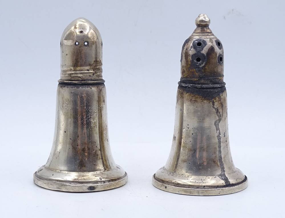 Salz und Pfefferstreuer, Sterlingsilber, H. 8,0cm, gefüllter Stand, Alters- und Gebrauchsspuren [1]