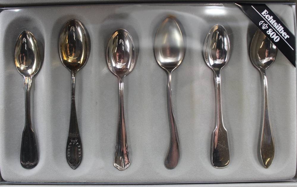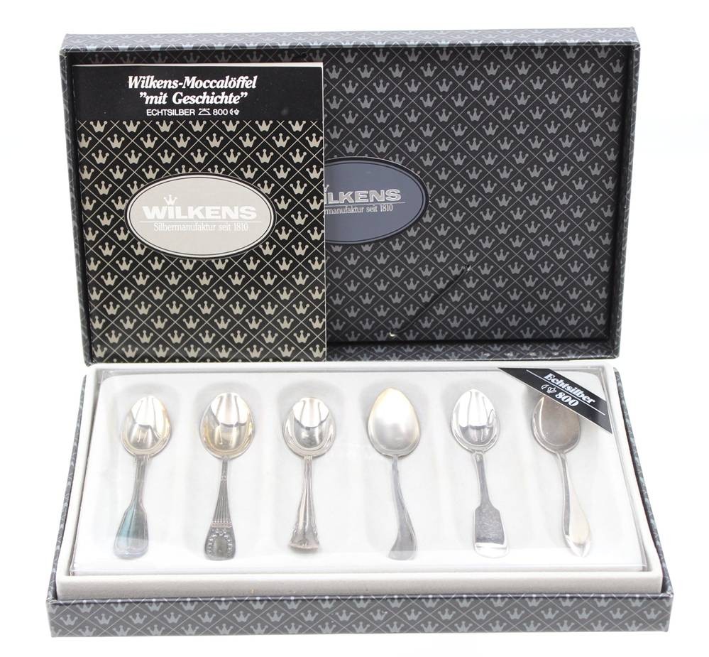 Sammelset, Wilkens Moccalöffel mit Geschichte, 6 Stück, Silber 800, 65gr., in orig. Kasten