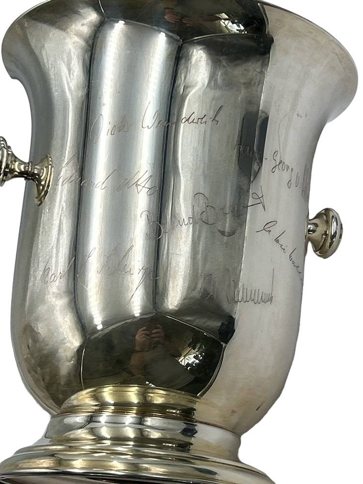 Sektkübel "Wilkens" versilbert, Frontseite mit div. Unterschriften, sehr gut erhalten, H-25 cm, D-21 cm [1]